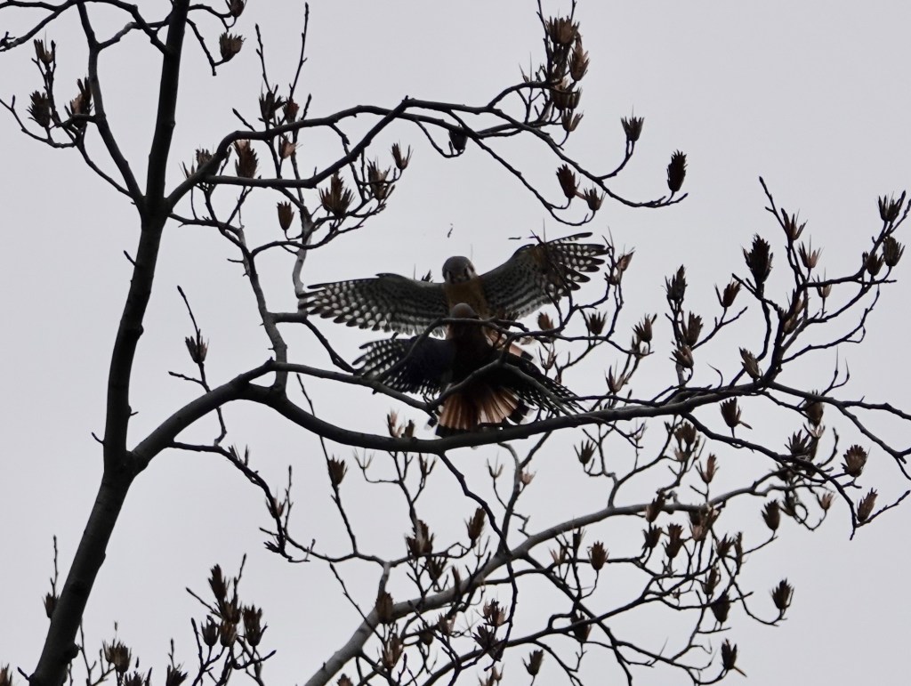 A couple times recently, I’ve seen two male American Kestrels loudly contesting the air space above a section of Green-Wood.