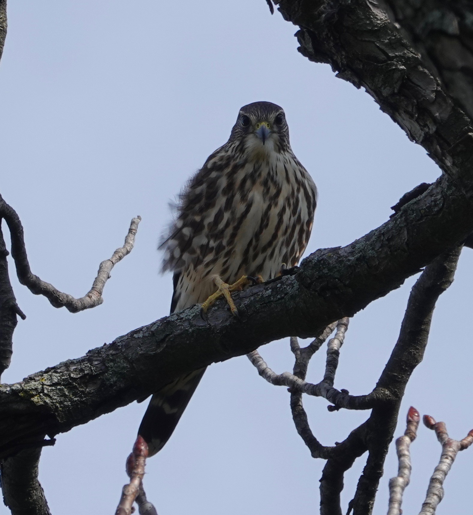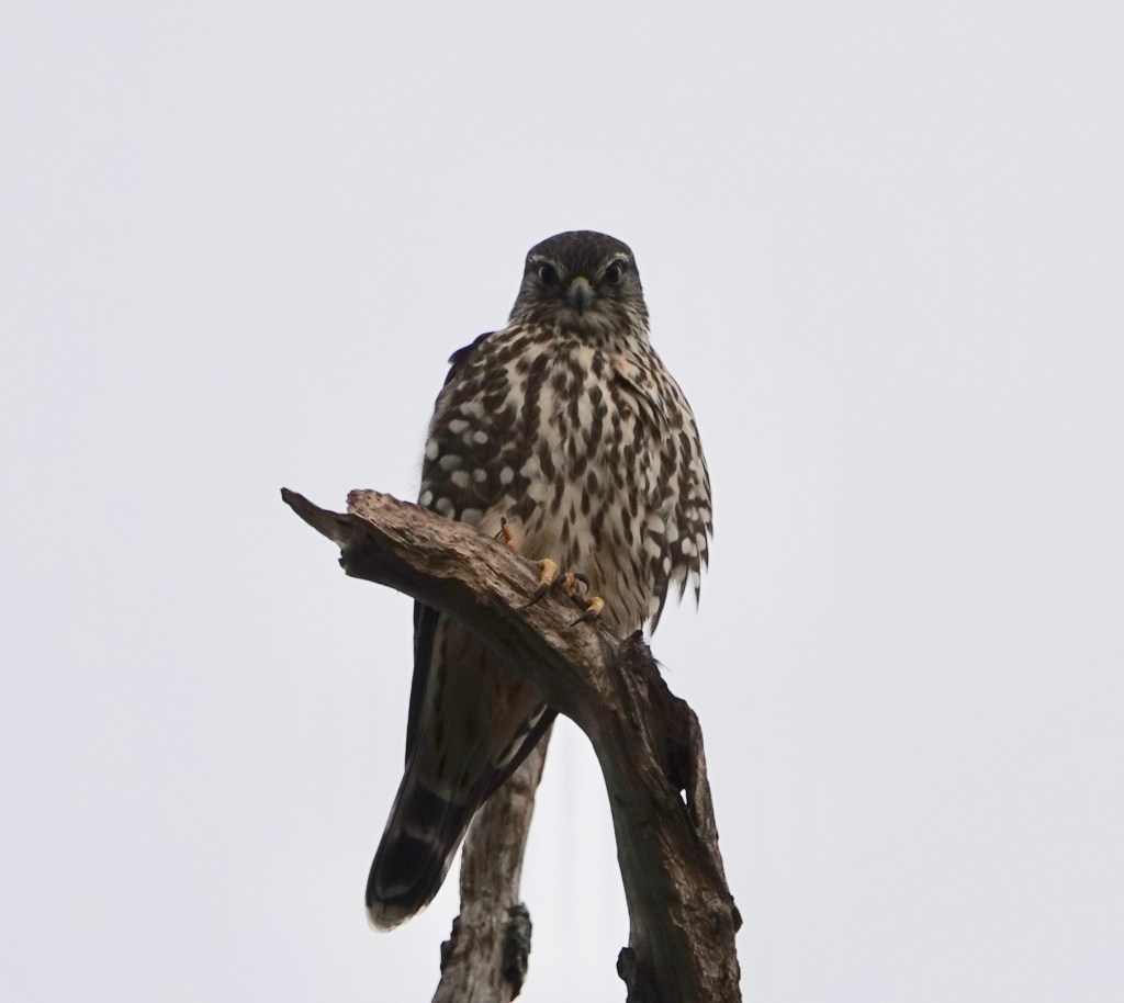 And back on November 15, there were two Merlins perched within 150 yards of each other. They’d also had a to-do before they want to their separate corners. One above, the other below.