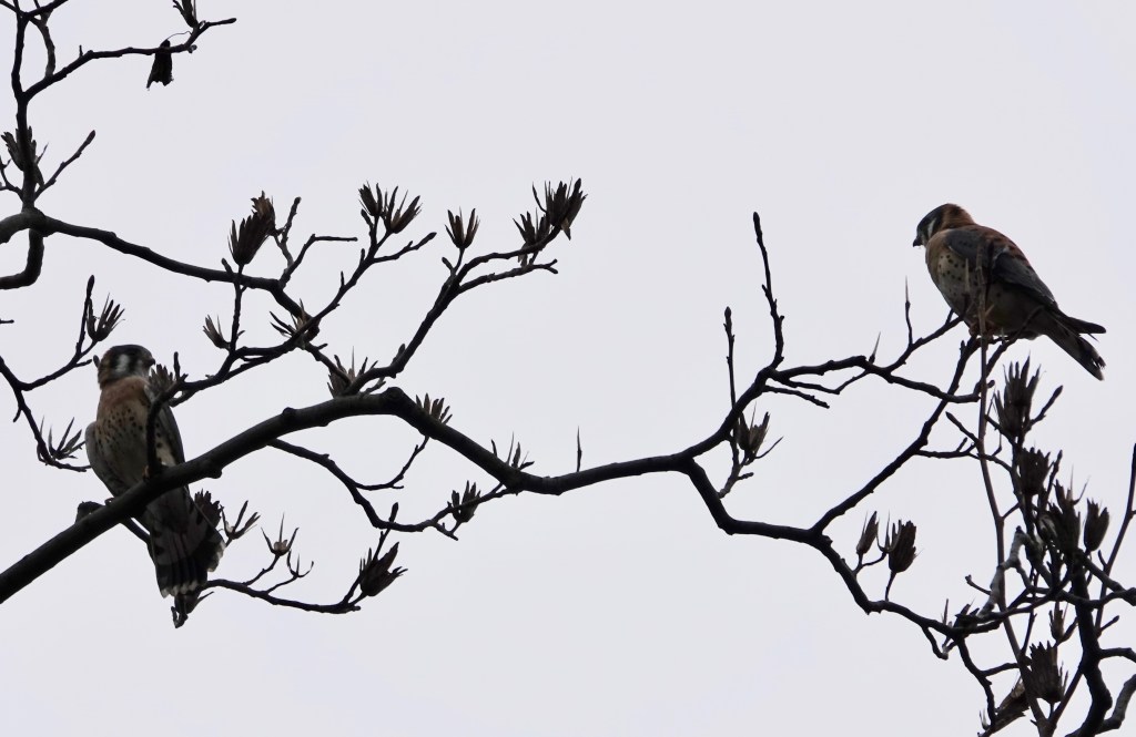 A couple times recently, I’ve seen two male American Kestrels loudly contesting the air space above a section of Green-Wood.