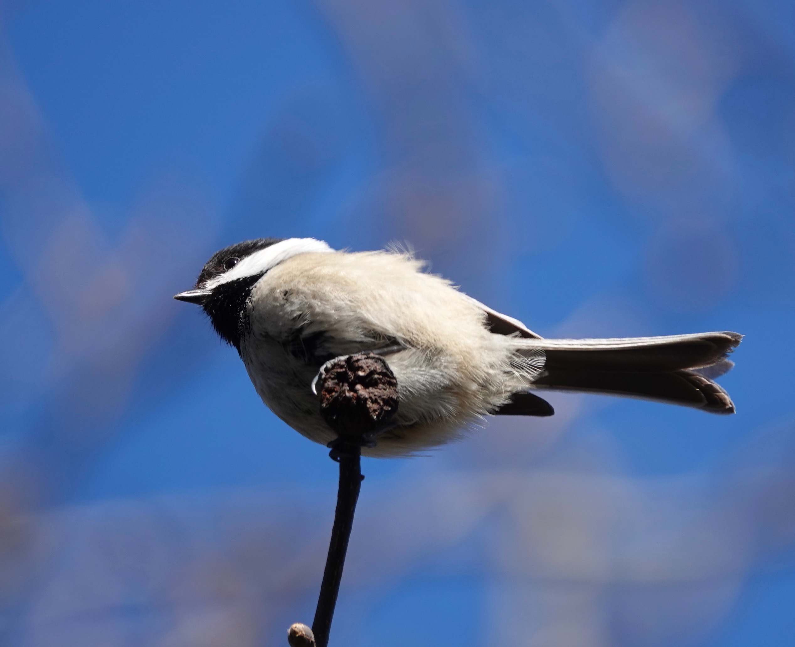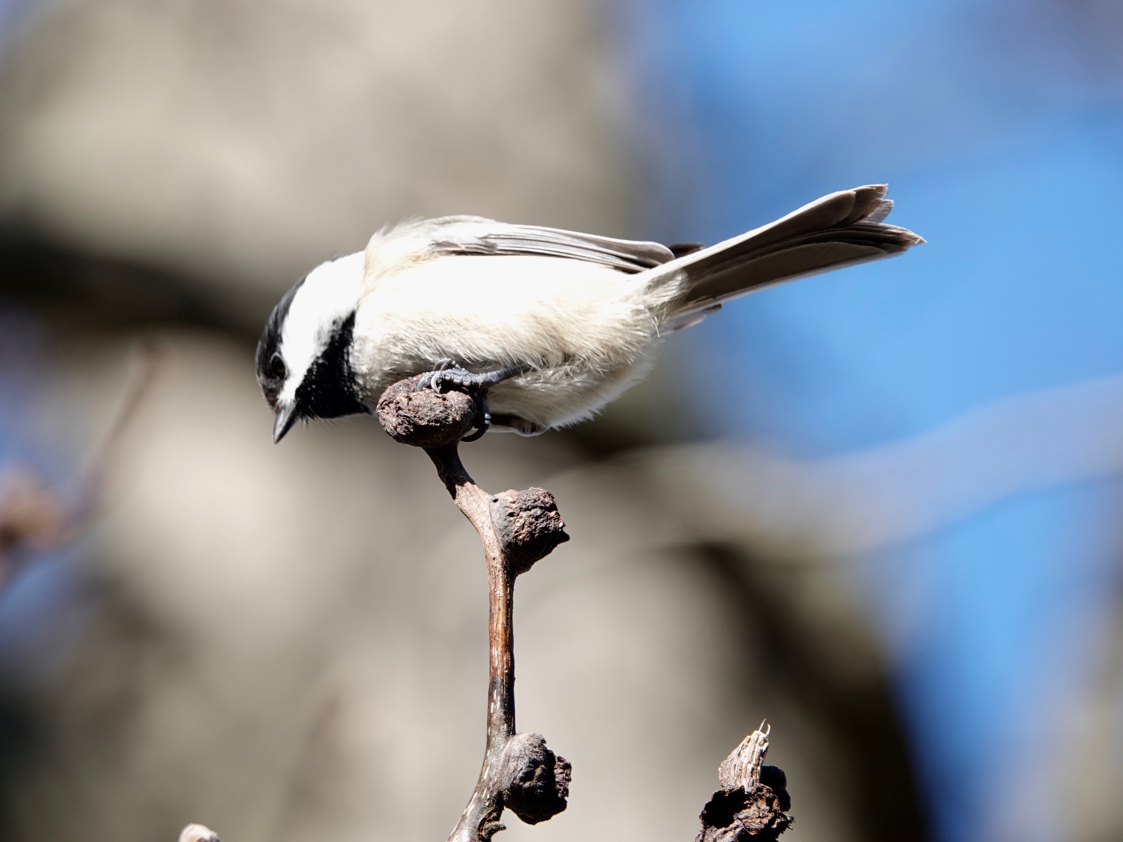 Chickadee landing on practically every old Phylloxera aphid gall on this shagbark hickory.