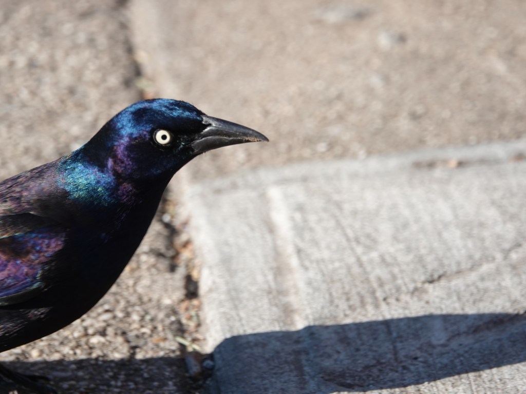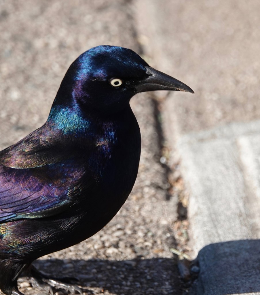 I love these birds — Last November I visited Texas with some serious birdwatchers and while they scoured the scrub for exotica I was delighted to watch grackles in the parking lots!