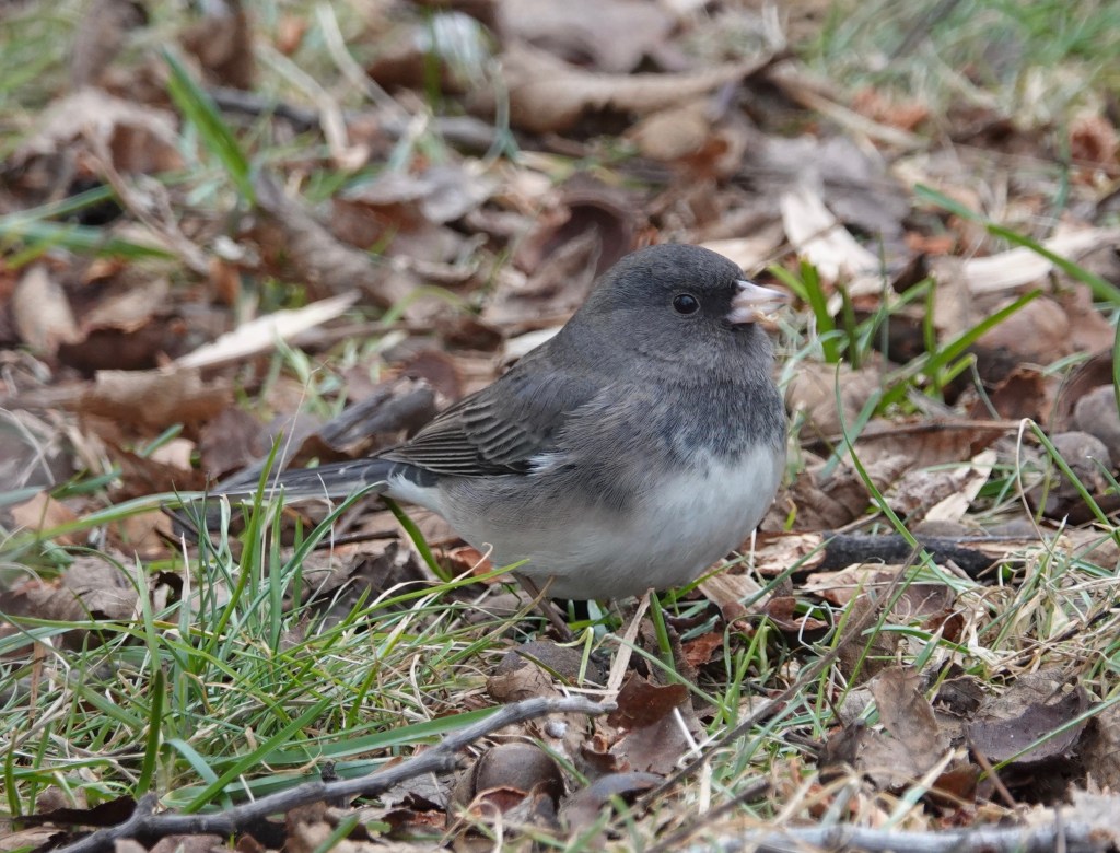 These two Dark-eyed Juncos were underneath a hickory tree that was absolutely littered with pieces of nut.
