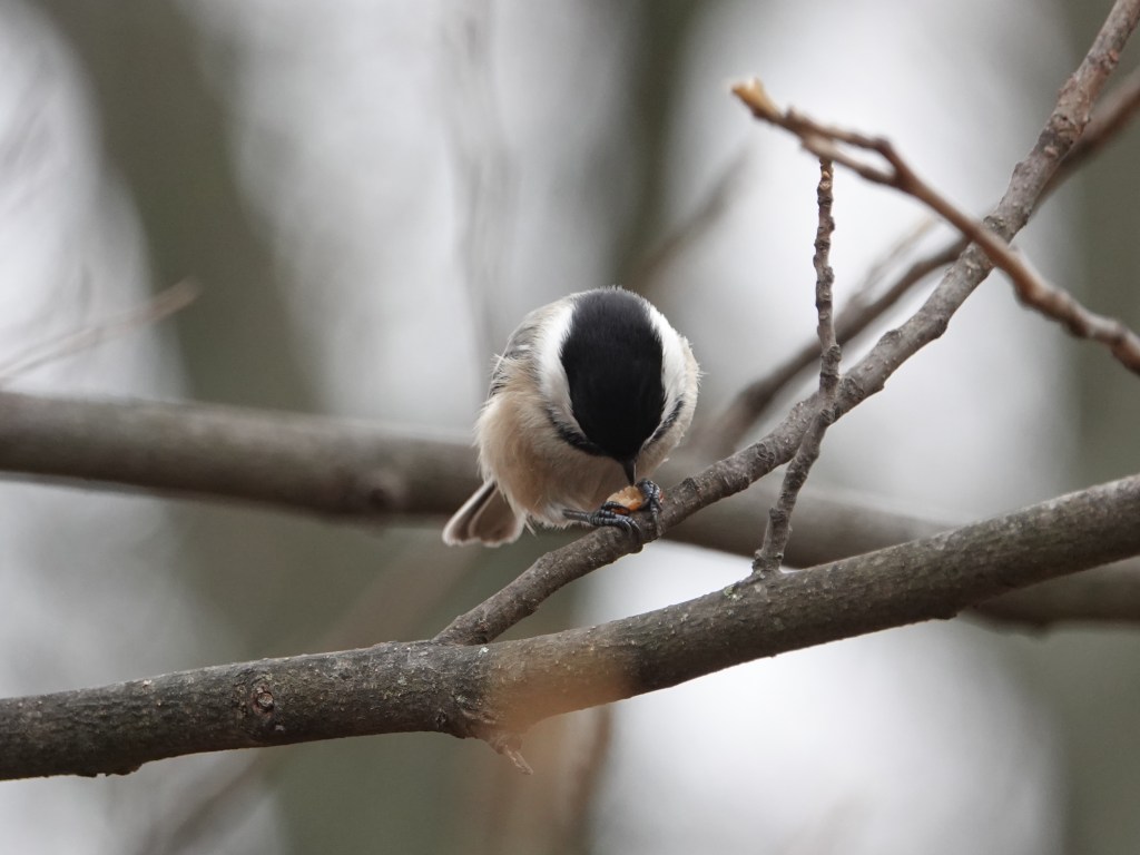 A couple of Black-capped Chickadees were doing the same.