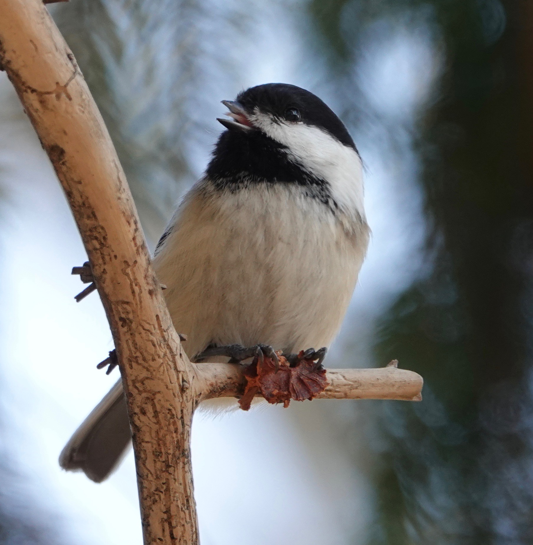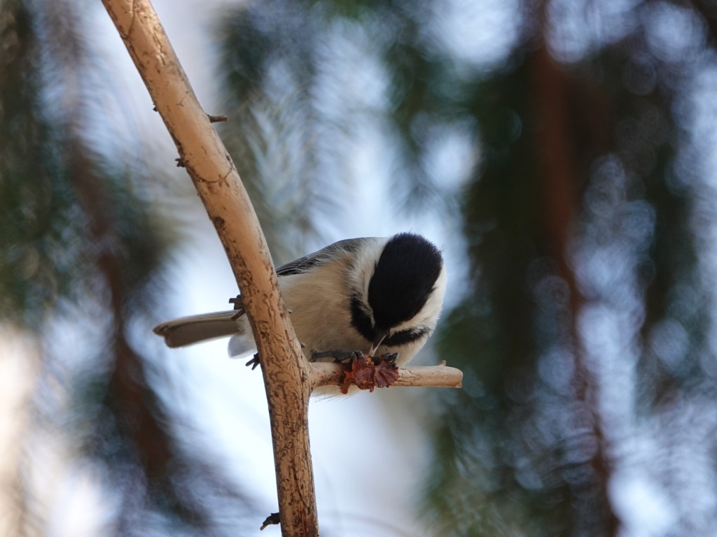 A couple of Black-capped Chickadees were doing the same.