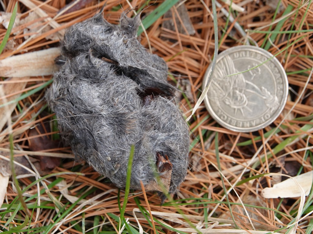 This pellet, much smaller, may have came from a Saw-whet. One or more has been seen locally this winter, although not by me. This pellet was all hair.