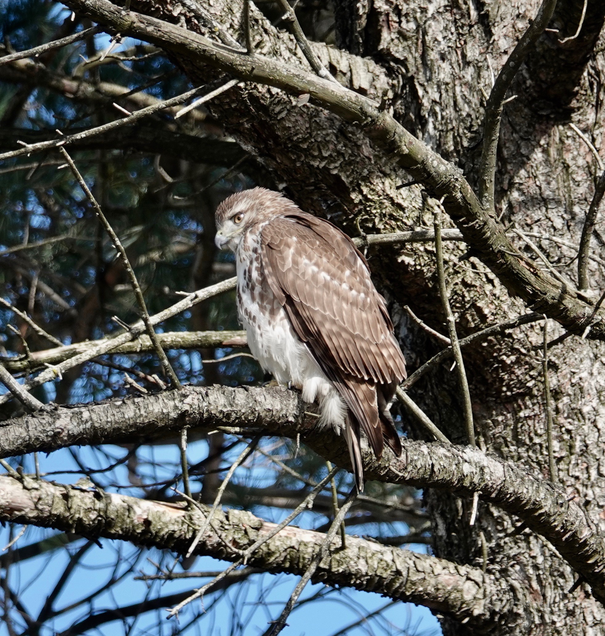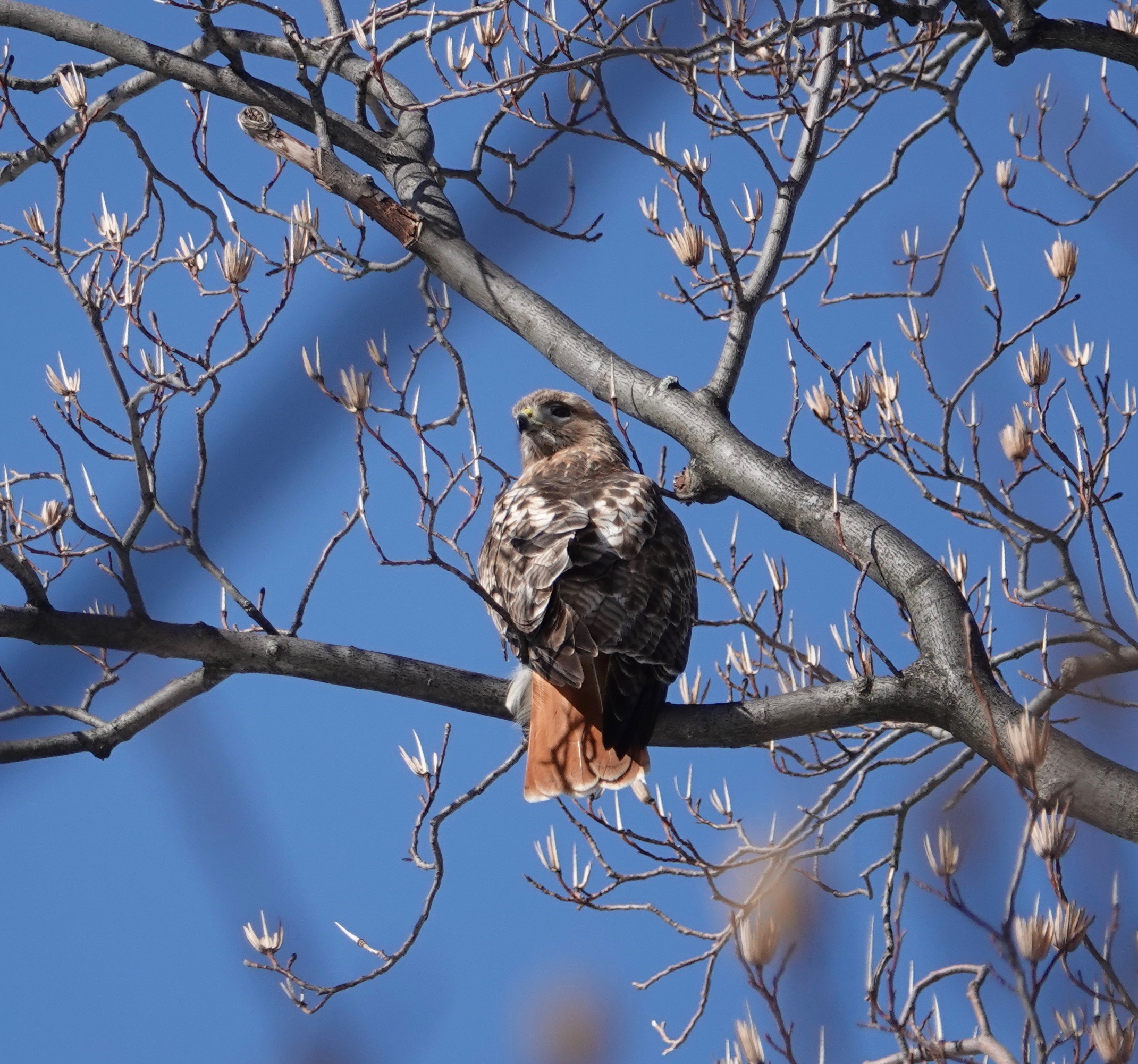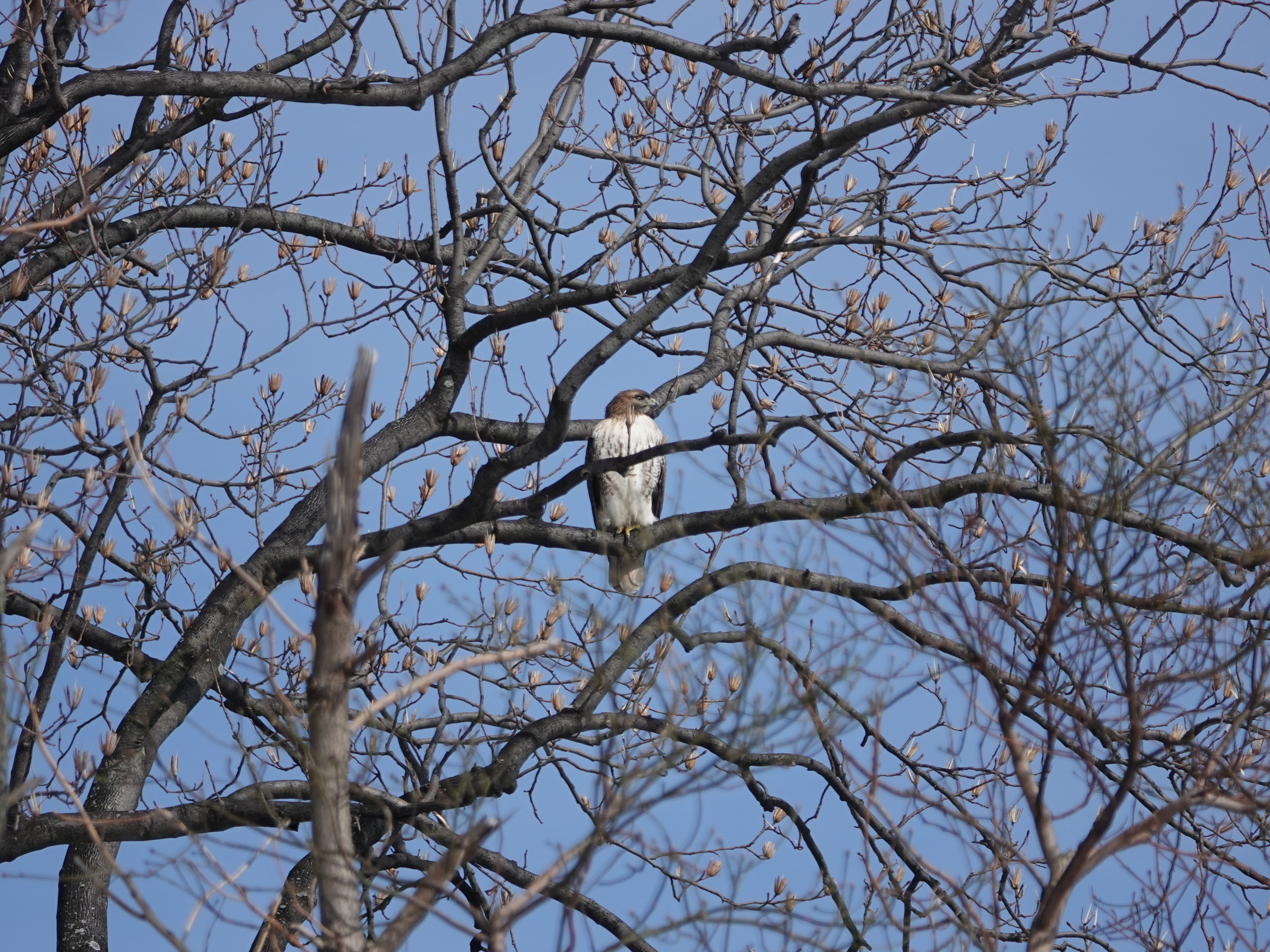 I had a dozen Red-tailed sightings on this two hour walk in Green-Wood. Three in the air at one point. But how many individuals that added up to, I can’t say.