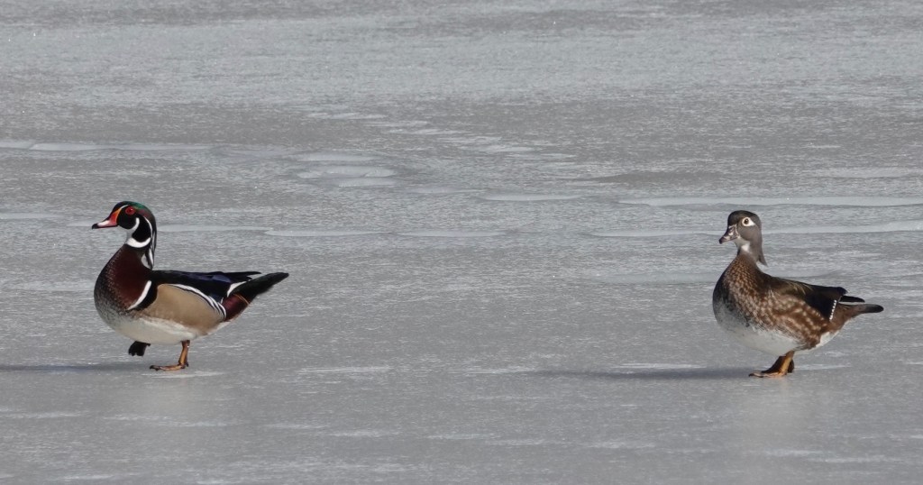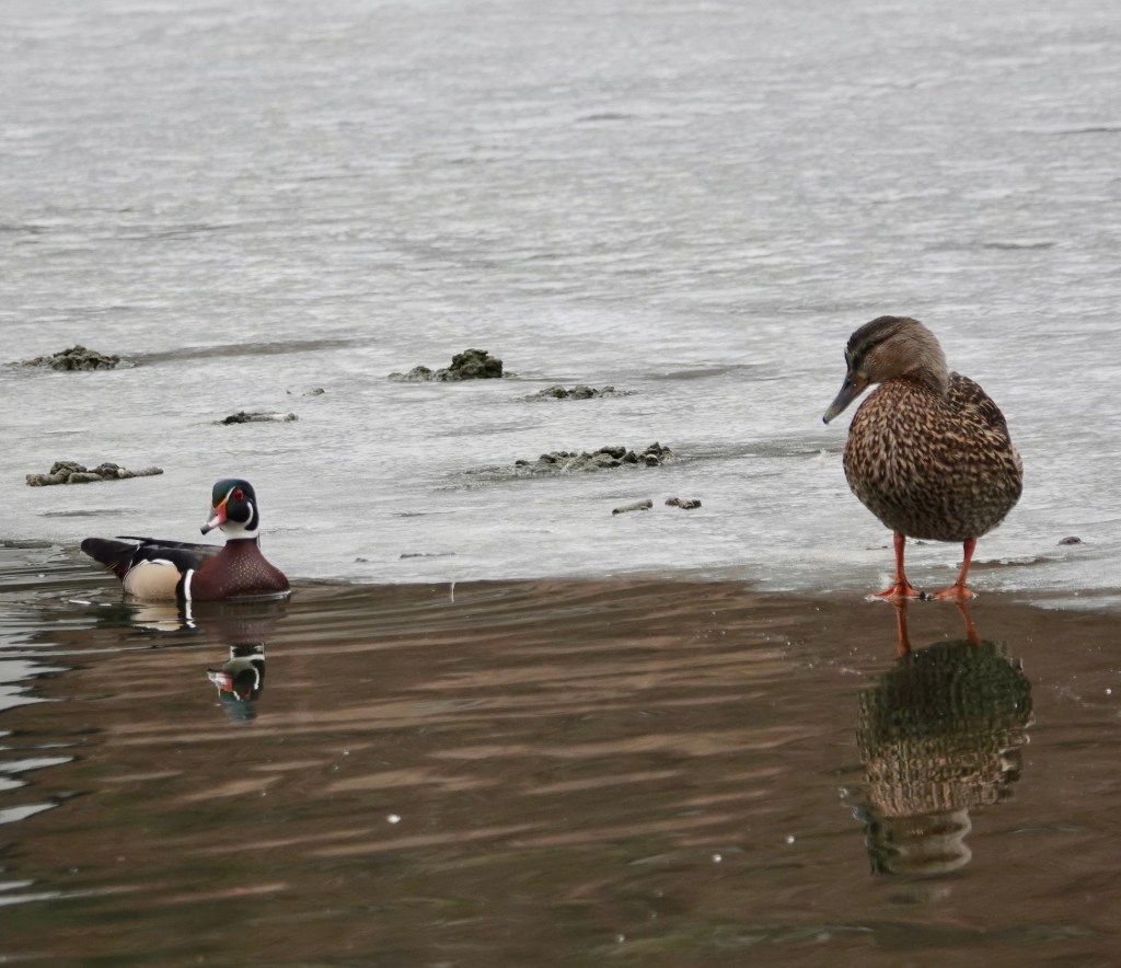 And Hooded Mergansers on the Sylvan Water, largest of water bodies in Green-Wood. The Hoodies, nobodies’ fools, were not approaching anyone on the shore, unlike the shameless Mallards.