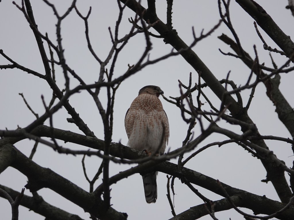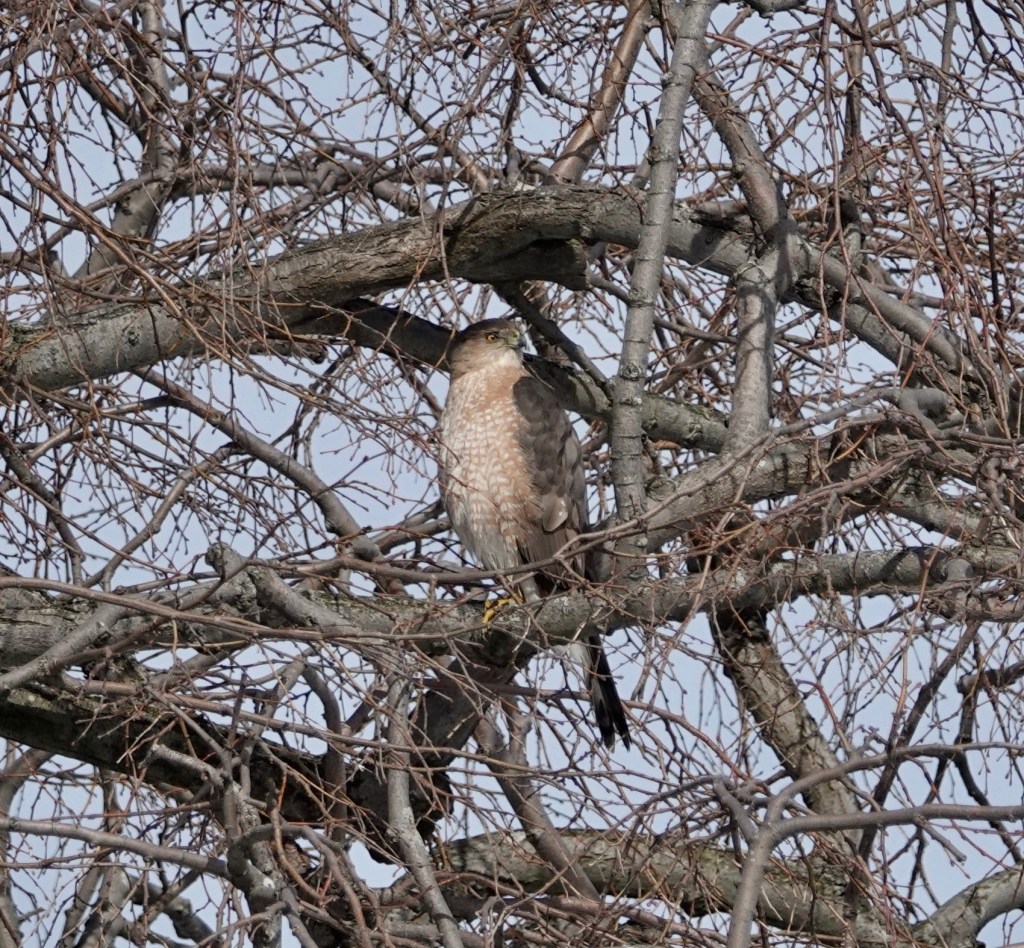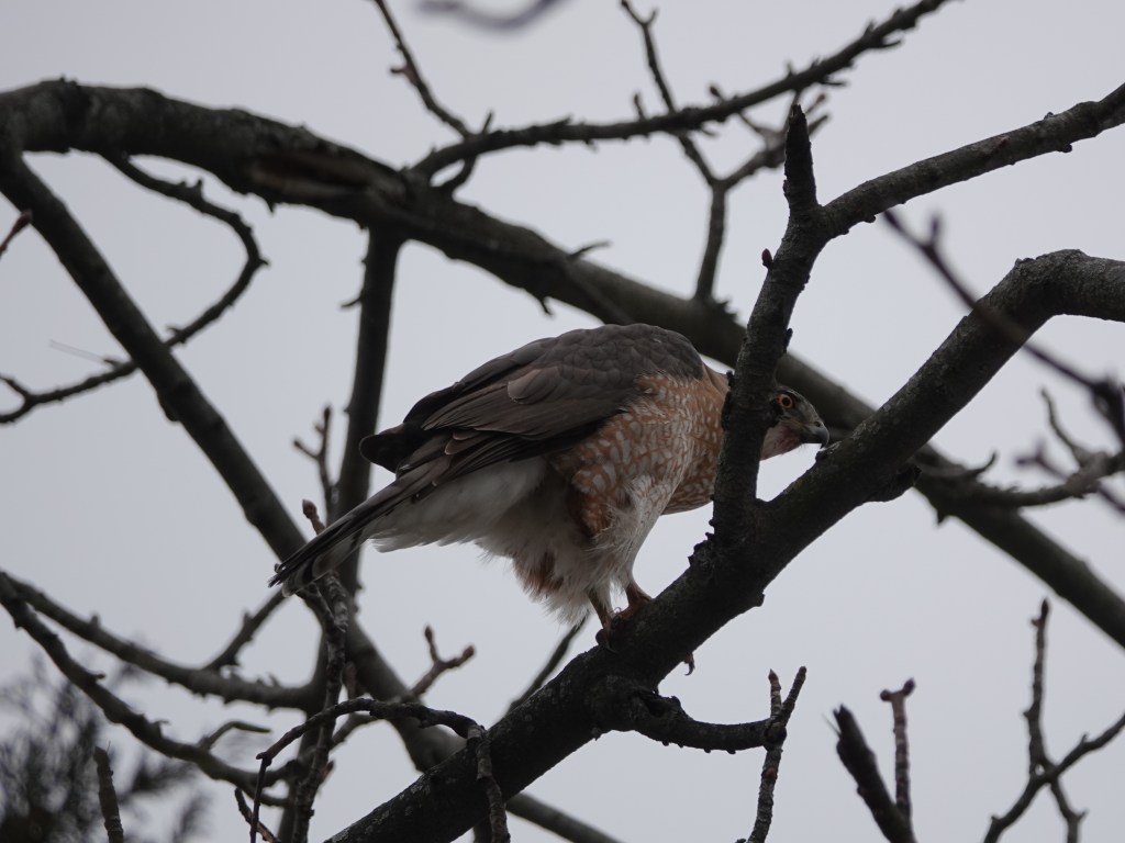 I surprised this adult Cooper’s Hawk bathing in the Sylvan Water, in the only patch that was un-iced along the water’s edge.