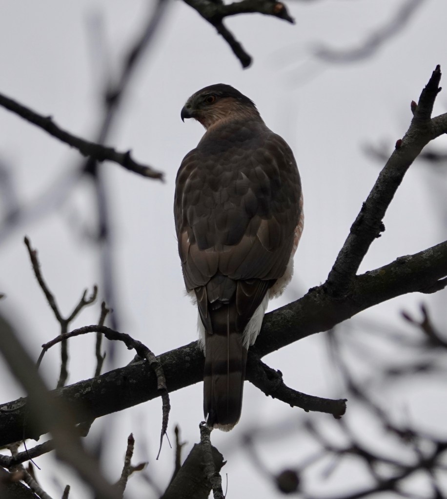 In addition to having the russet rippled chest as opposed to the streaky dark blobs of an immature bird, an adult Cooper’s doesn’t have much white on the back and wings.