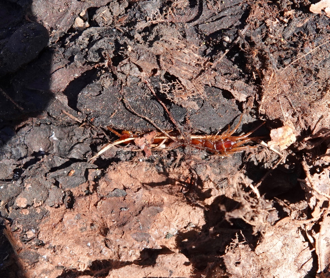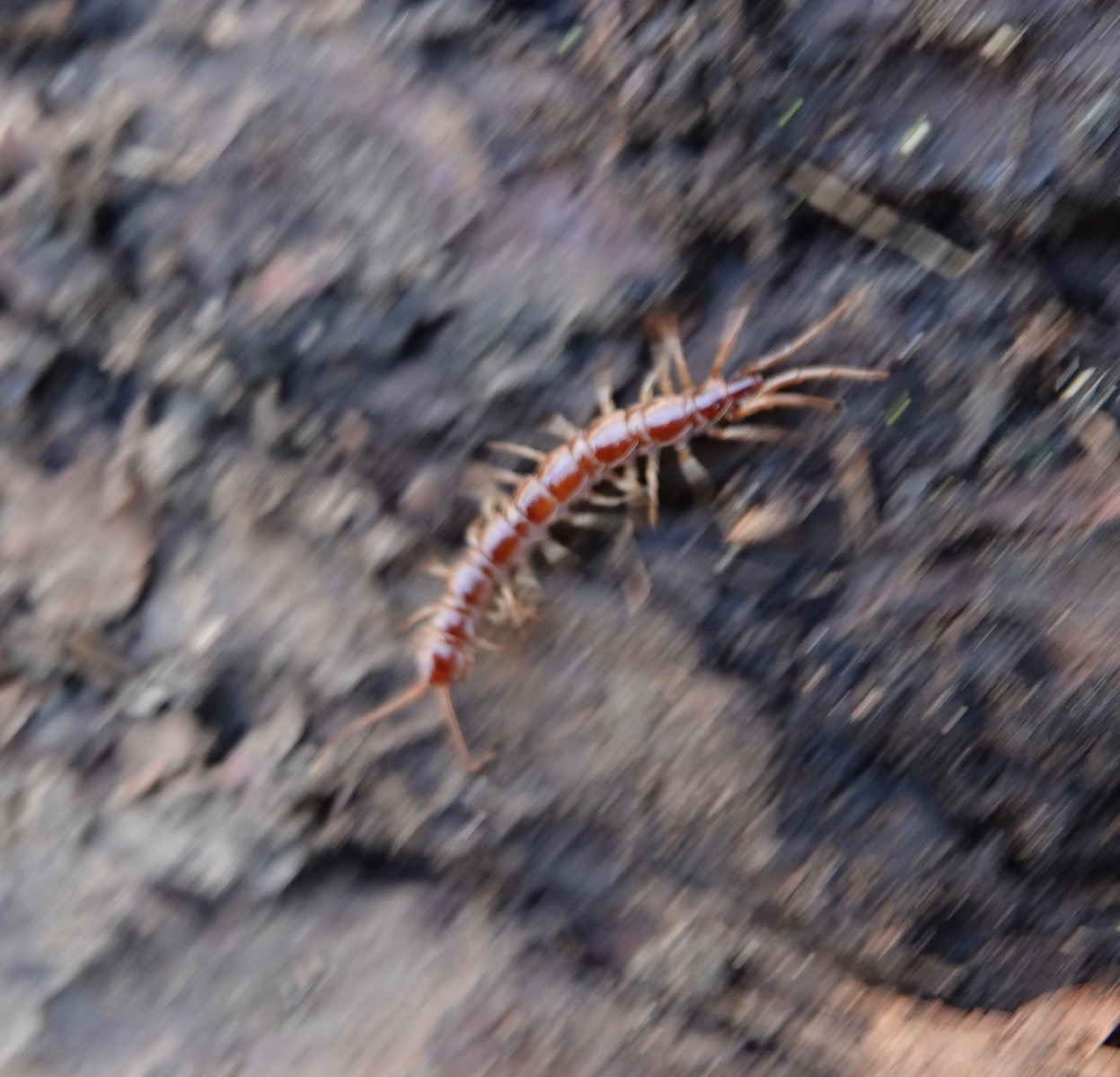 Centipede scurrying from the light.