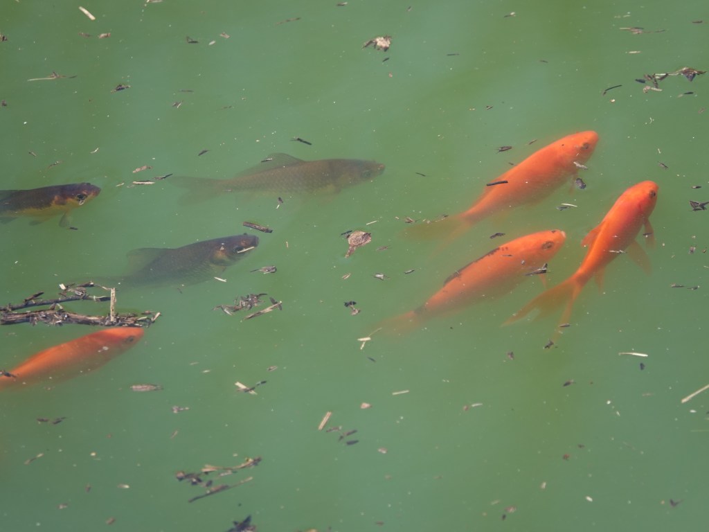There were an awful lot of goldfish in the Dell Water. Here’s the thing: for most of last year, the Dell was practically just a puddle, half of it dry and overgrown with various plants. All these fish must have been clustered tight down in the mud.