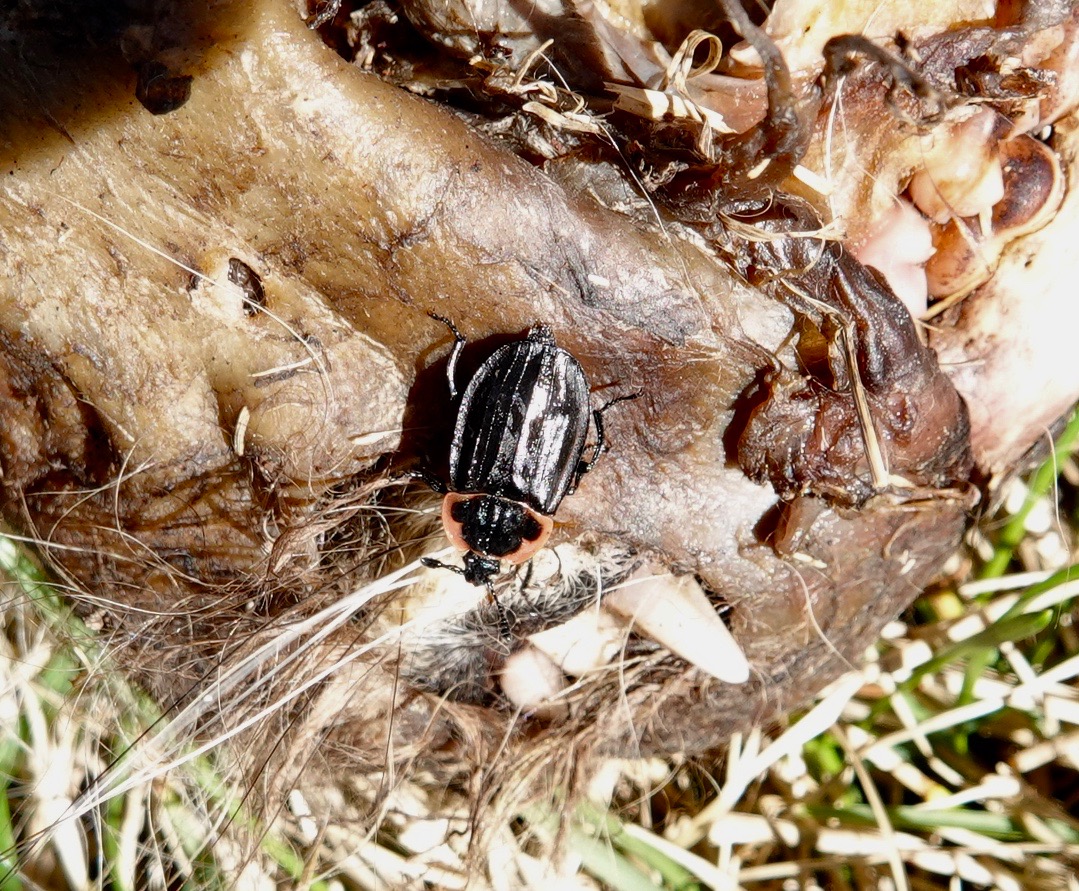 Some raccoon remains incited this Margined Carrion Beetle (Oiceoptoma noveboracense). The females lay their eggs in rotting meat…