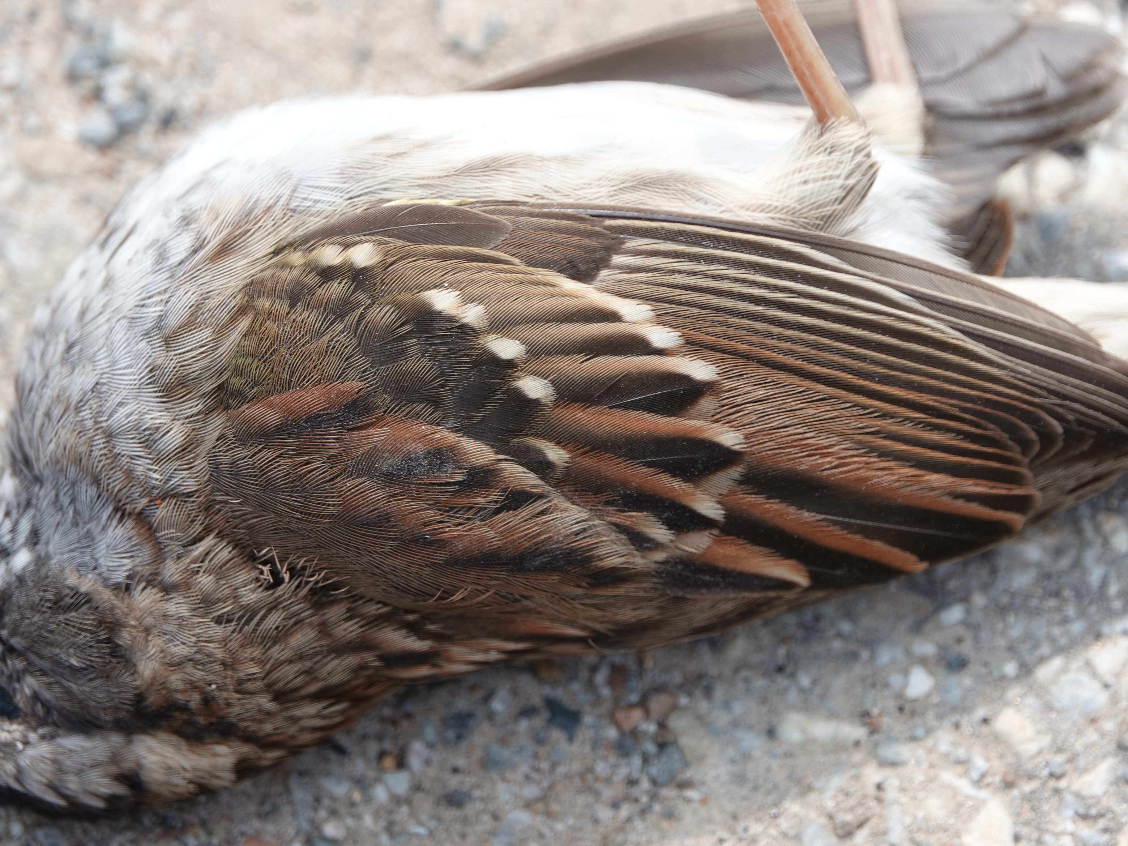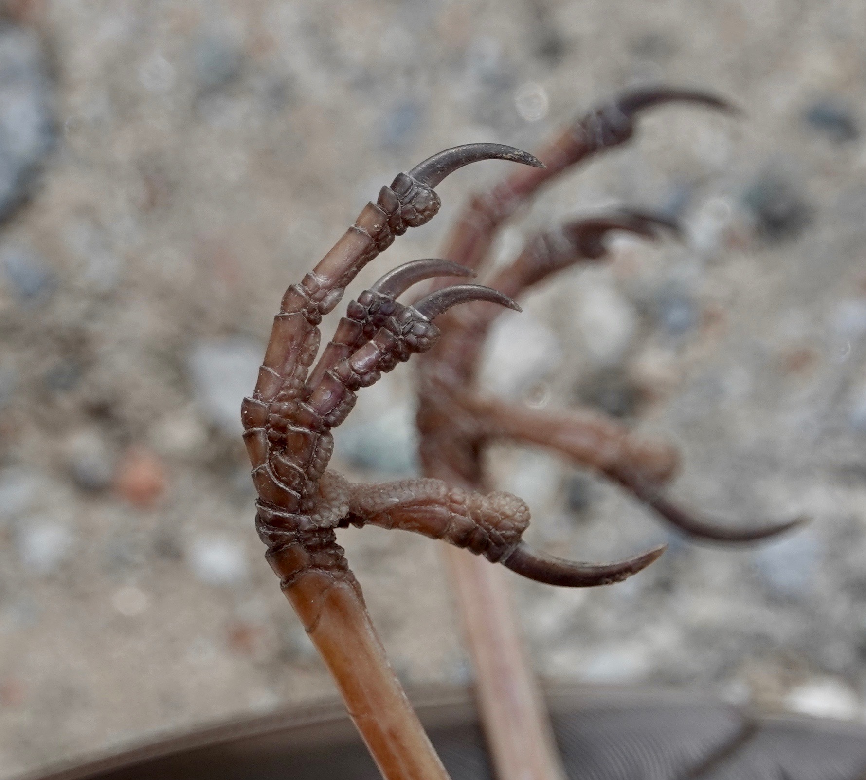 Anyway, these White-throats will probably disappear soon as they head north to breed. But this particular one, alas, will not. The body, however, gives us incredible views of the passerine foot.
