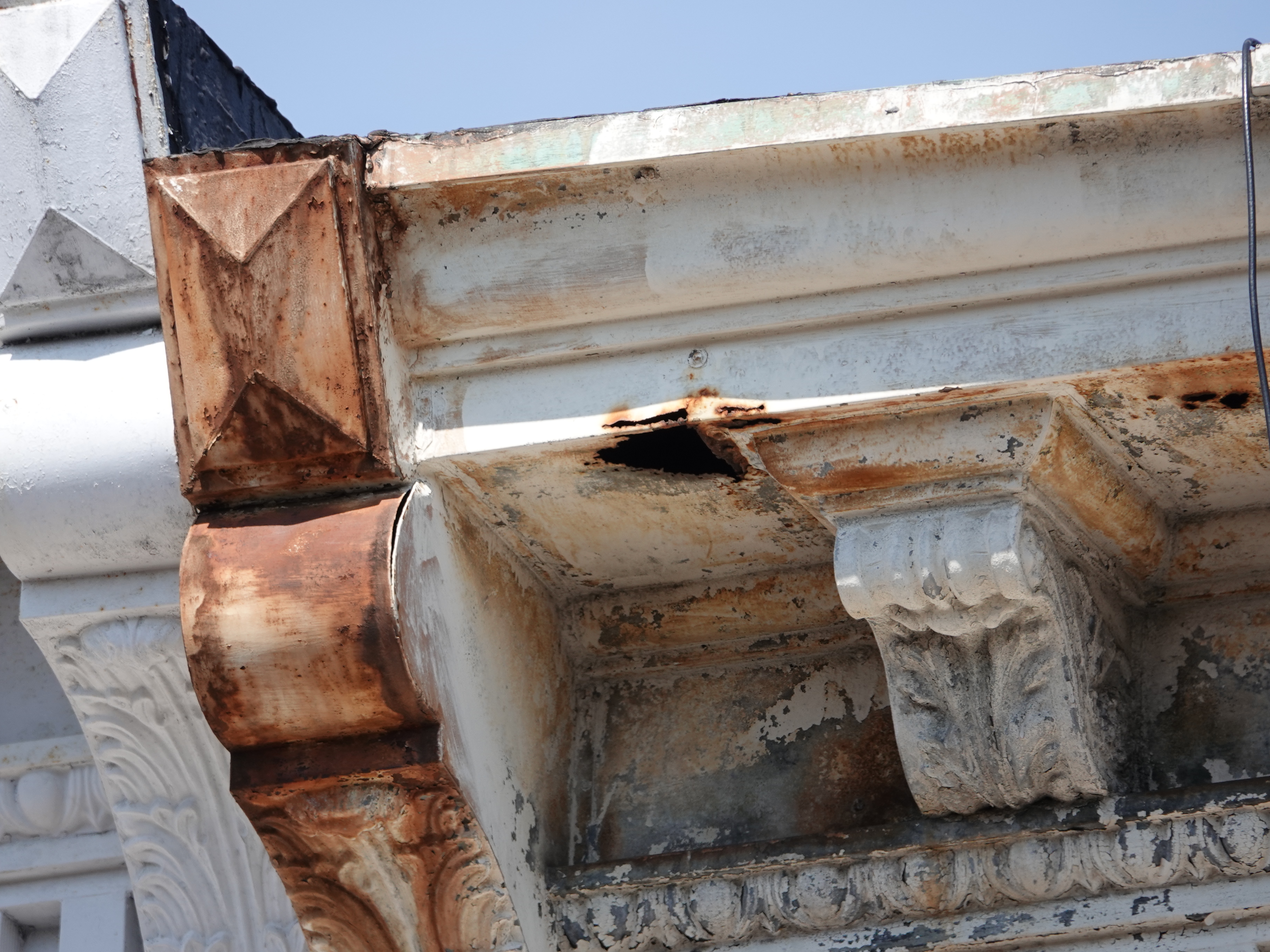 But I noticed one of them flying and dropping below the line of the buildings about halfway down the block. Perhaps they’d already found a new nest site? (There was a Starling nest I remembered down there somewhere.) There are some very poorly-maintained cornices in this town, my friends. This is one of the reasons American Kestrels do so well here: cavity nest sites for the taking. They don’t have to depend on dead trees in the supposed “wild,” where, in fact, American Kestrels populations are not doing well.