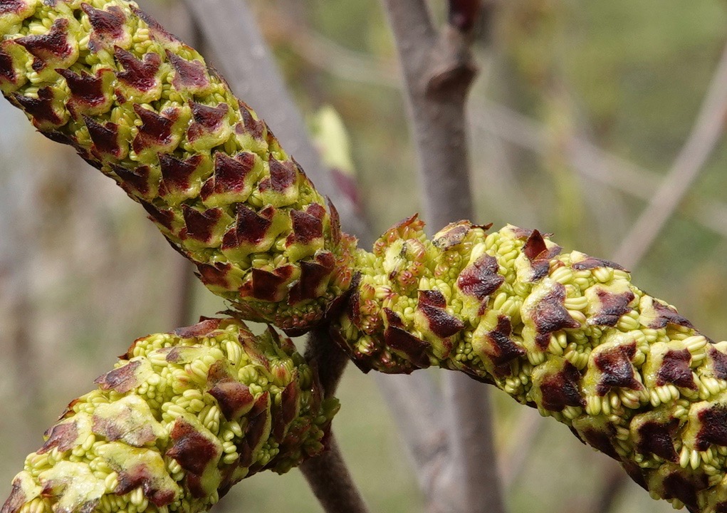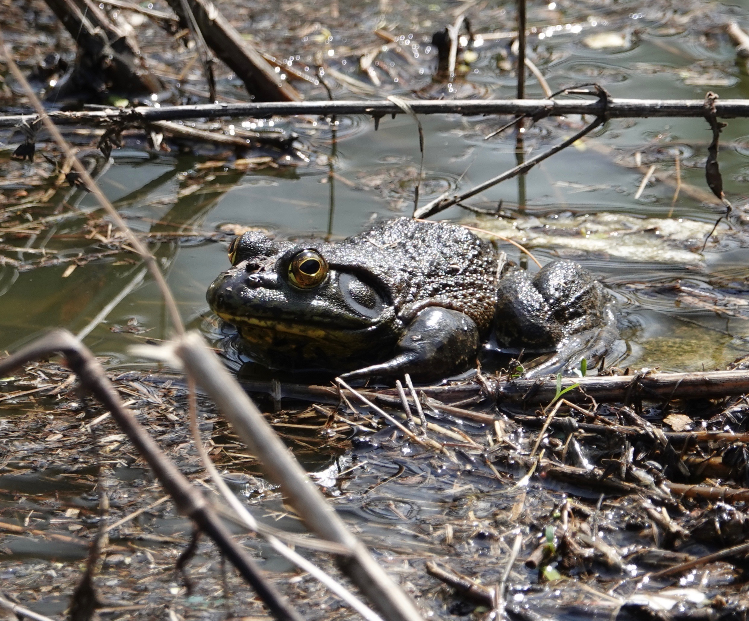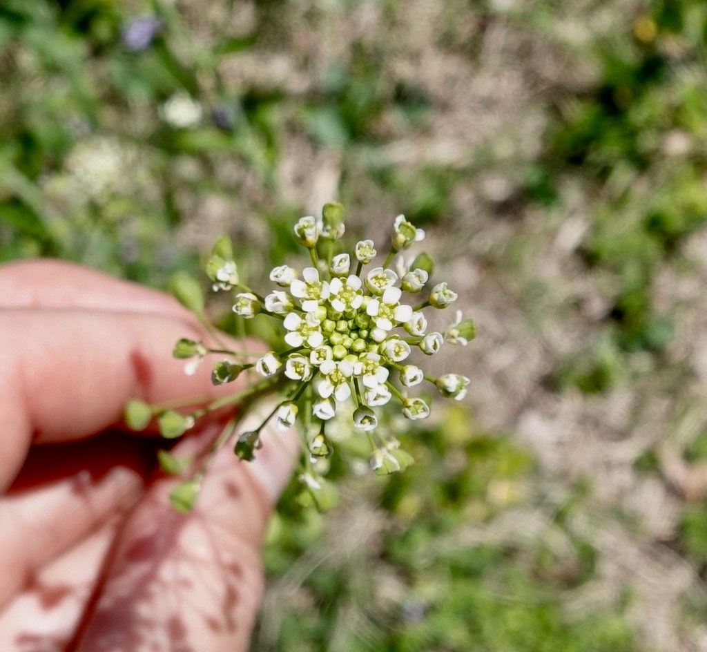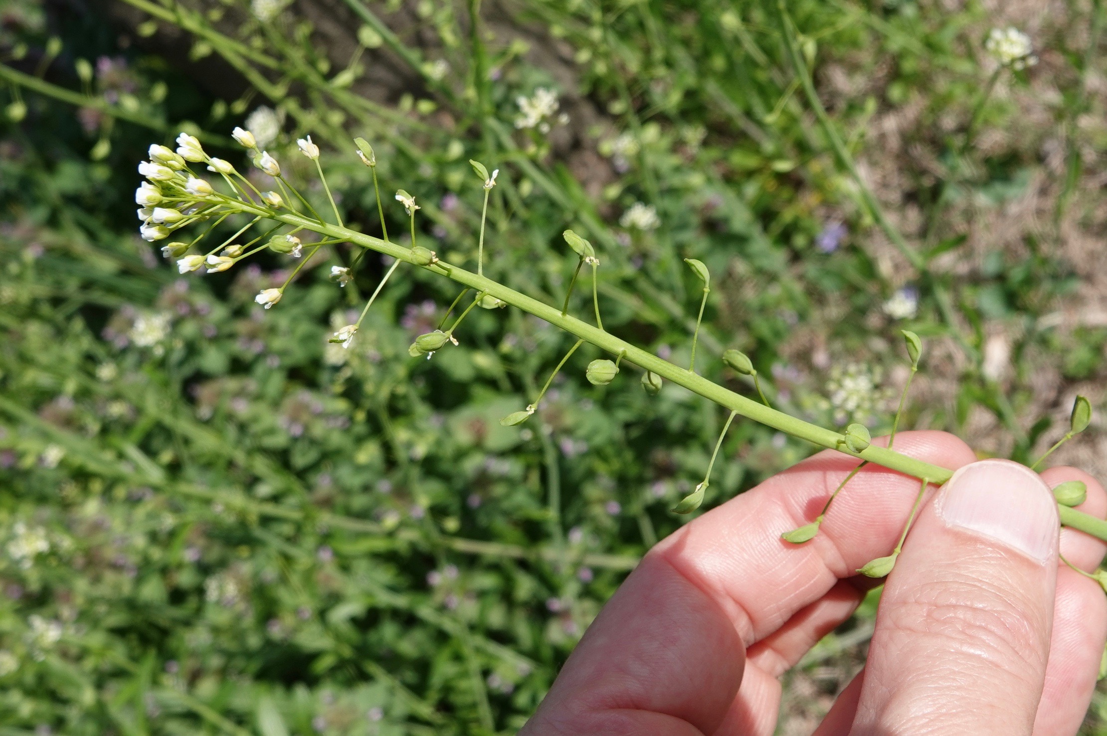 Bullfrogs.Termites.Baby beeches, but you’ve gotta be quick, before the mower death squads.Puccinia liliacearum, a rust fungus on some kind of Liliales.Digger bee on crabapple.Garlic Penny-Cress (Mummenhoffia alliacea)Leaf shelter of a Rhopalosiphum cherry-grass aphid. Starts life on rose family plants, then moves to grasses in the summer. This is an ornamental cherry leaf.Swamp alder.
