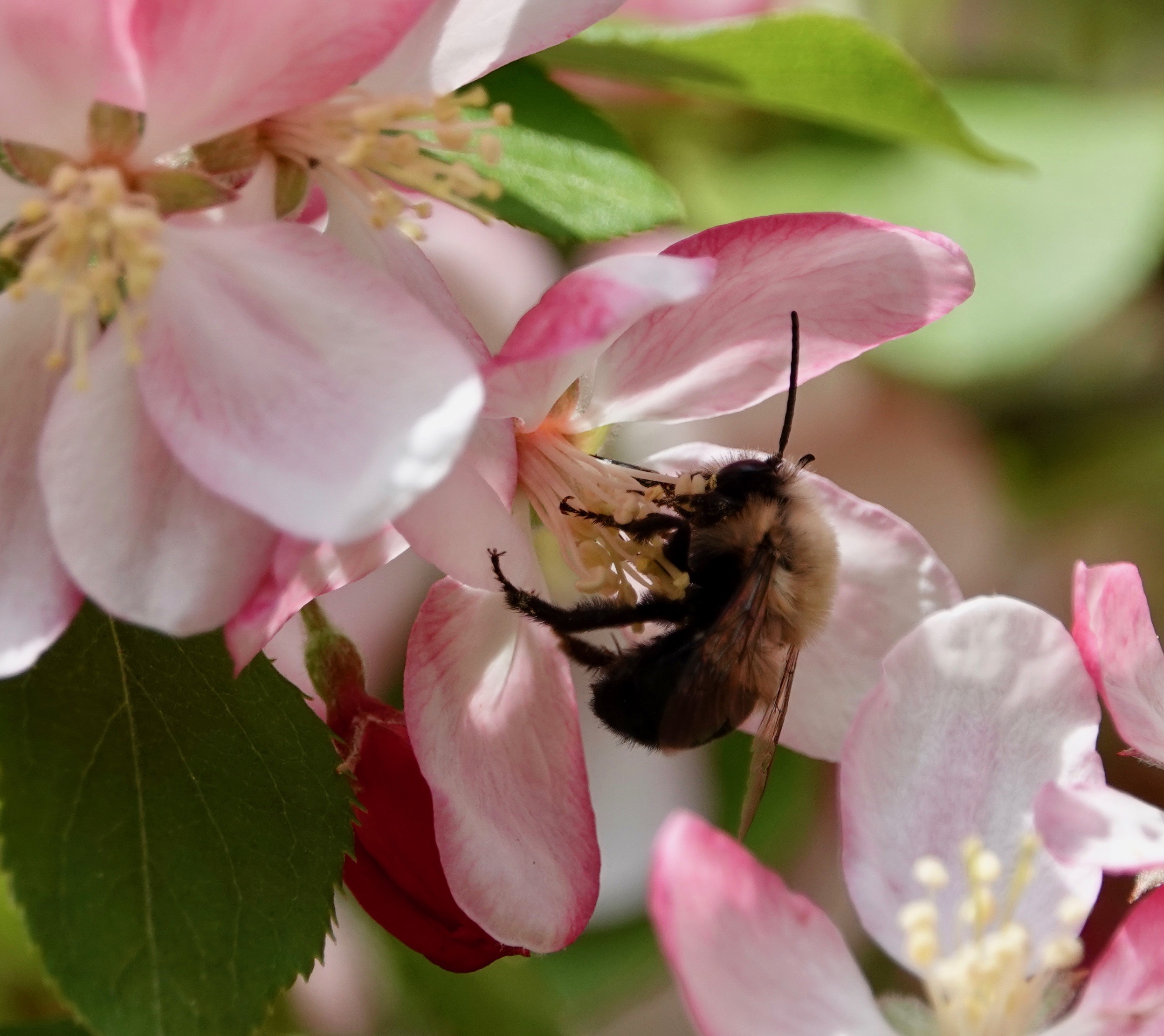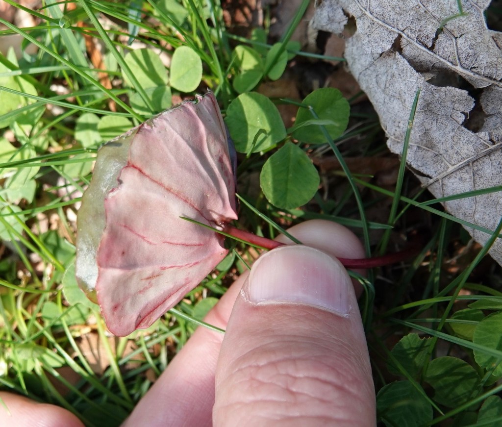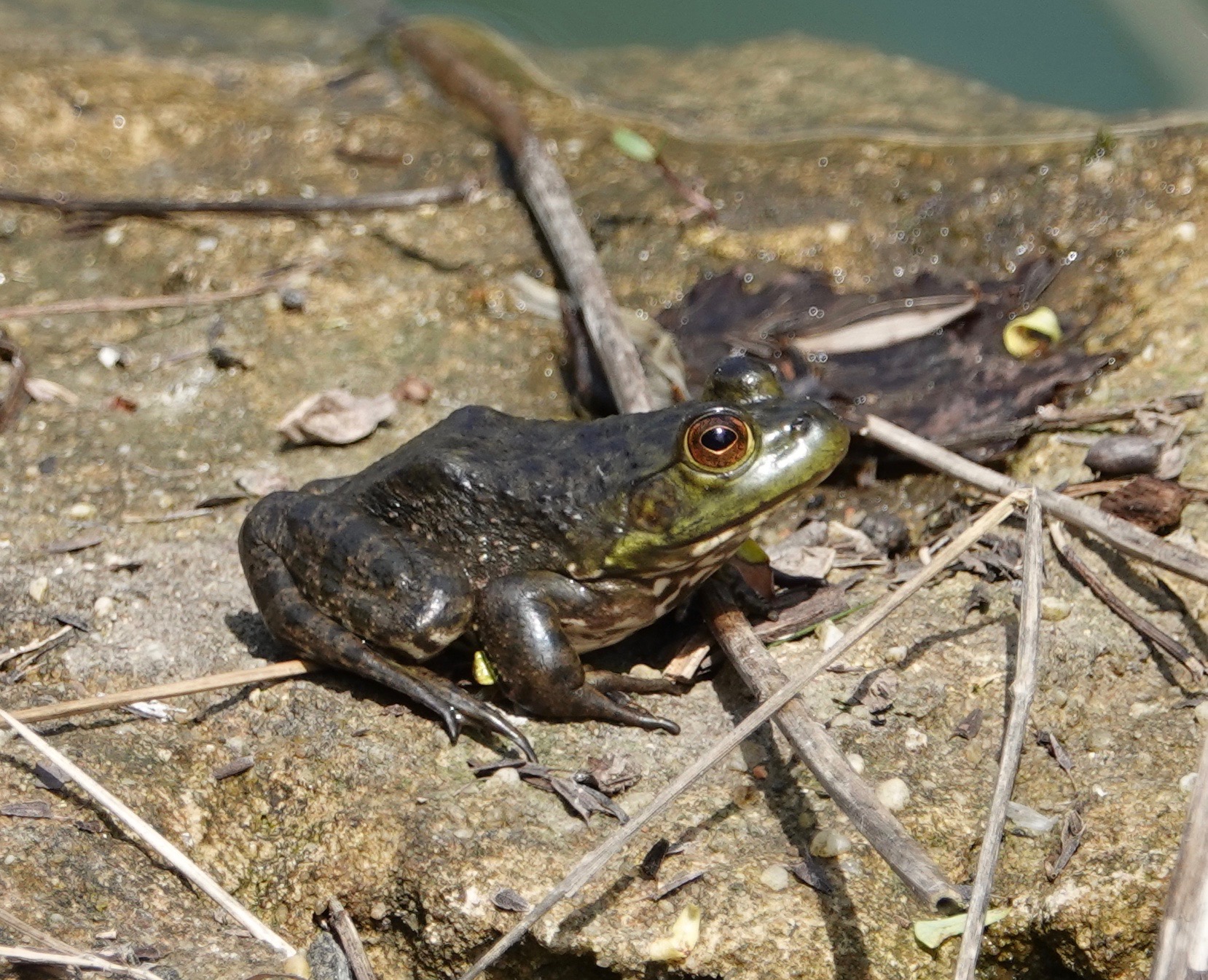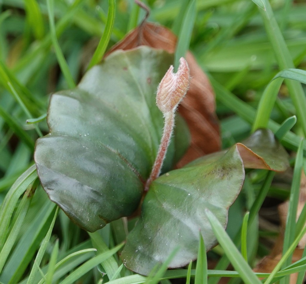 Bullfrogs.Termites.Baby beeches, but you’ve gotta be quick, before the mower death squads.Puccinia liliacearum, a rust fungus on some kind of Liliales.Digger bee on crabapple.Garlic Penny-Cress (Mummenhoffia alliacea)Leaf shelter of a Rhopalosiphum cherry-grass aphid. Starts life on rose family plants, then moves to grasses in the summer. This is an ornamental cherry leaf.Swamp alder.