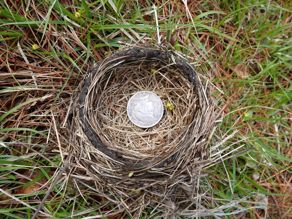 The nest on the ground looks like an Andy Goldsworthy art piece.