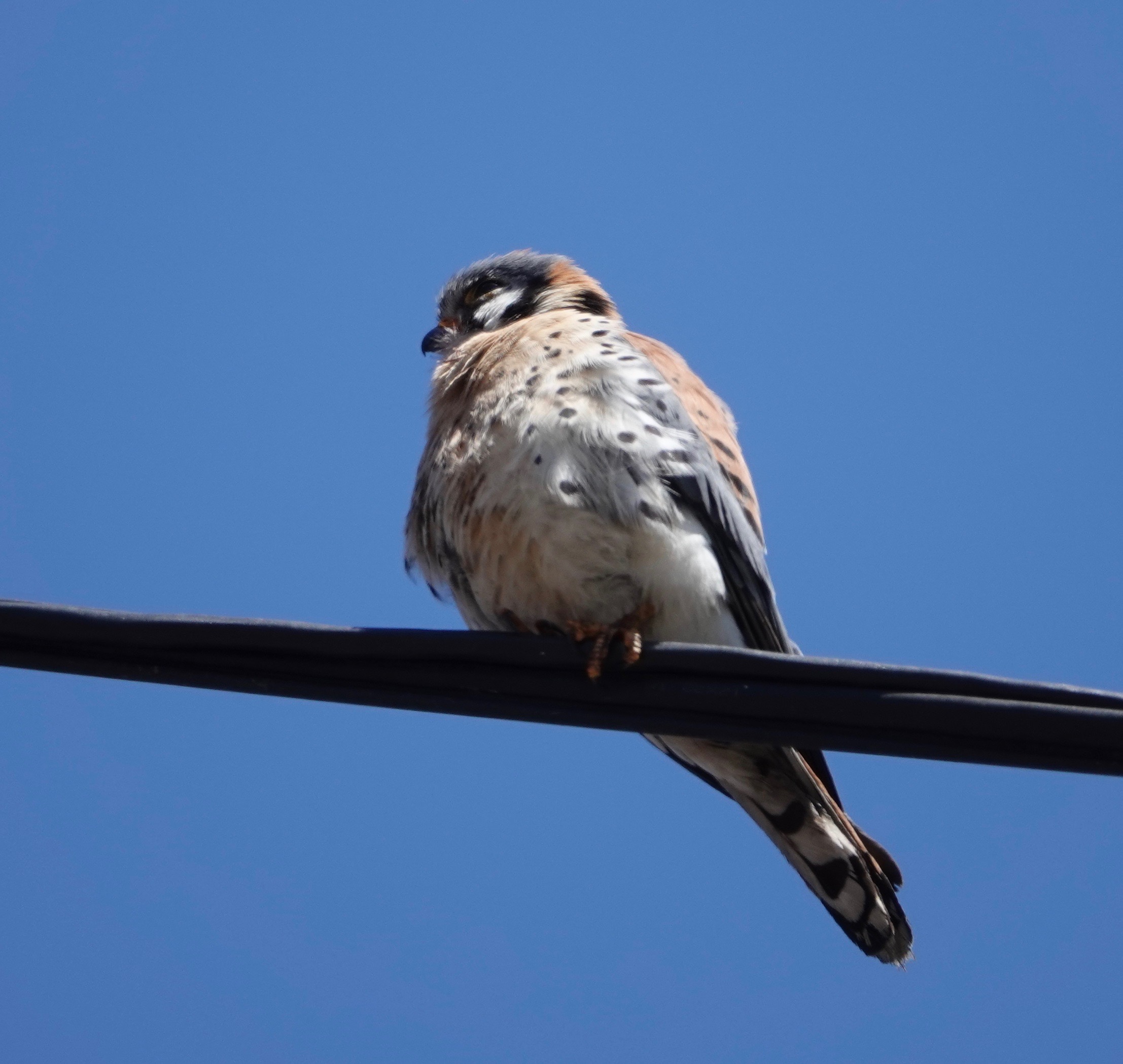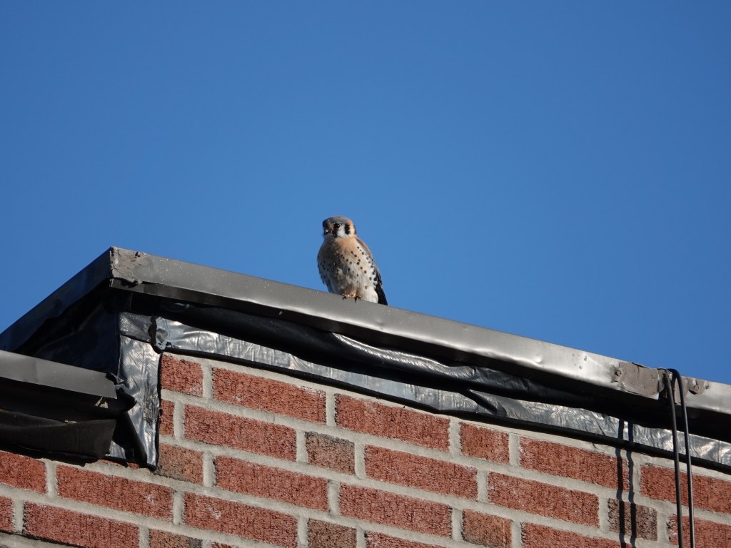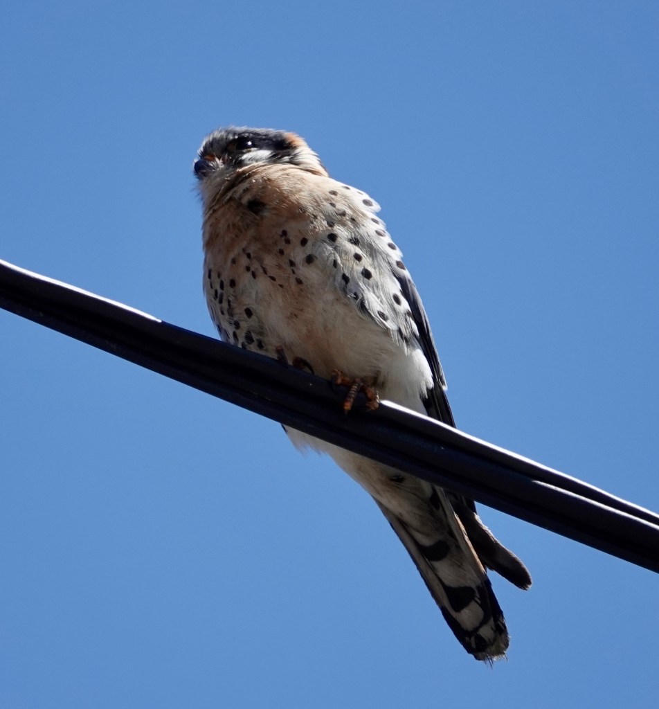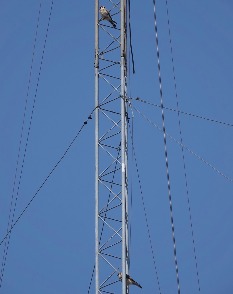 The last time I saw the local American Kestrels together was on April 20. I assume the female is incubating now. (The male will sit on eggs, but the female does most of this work.)