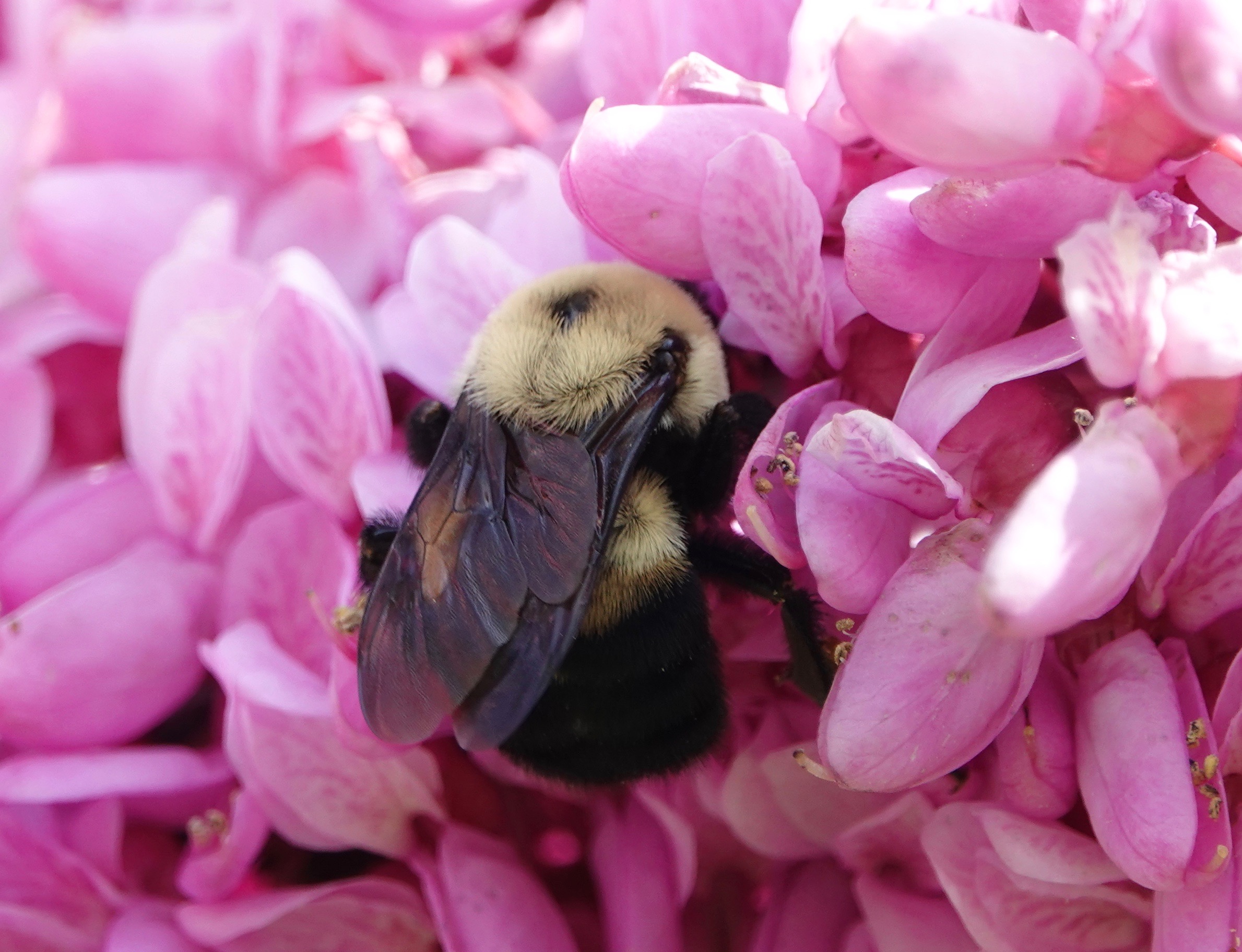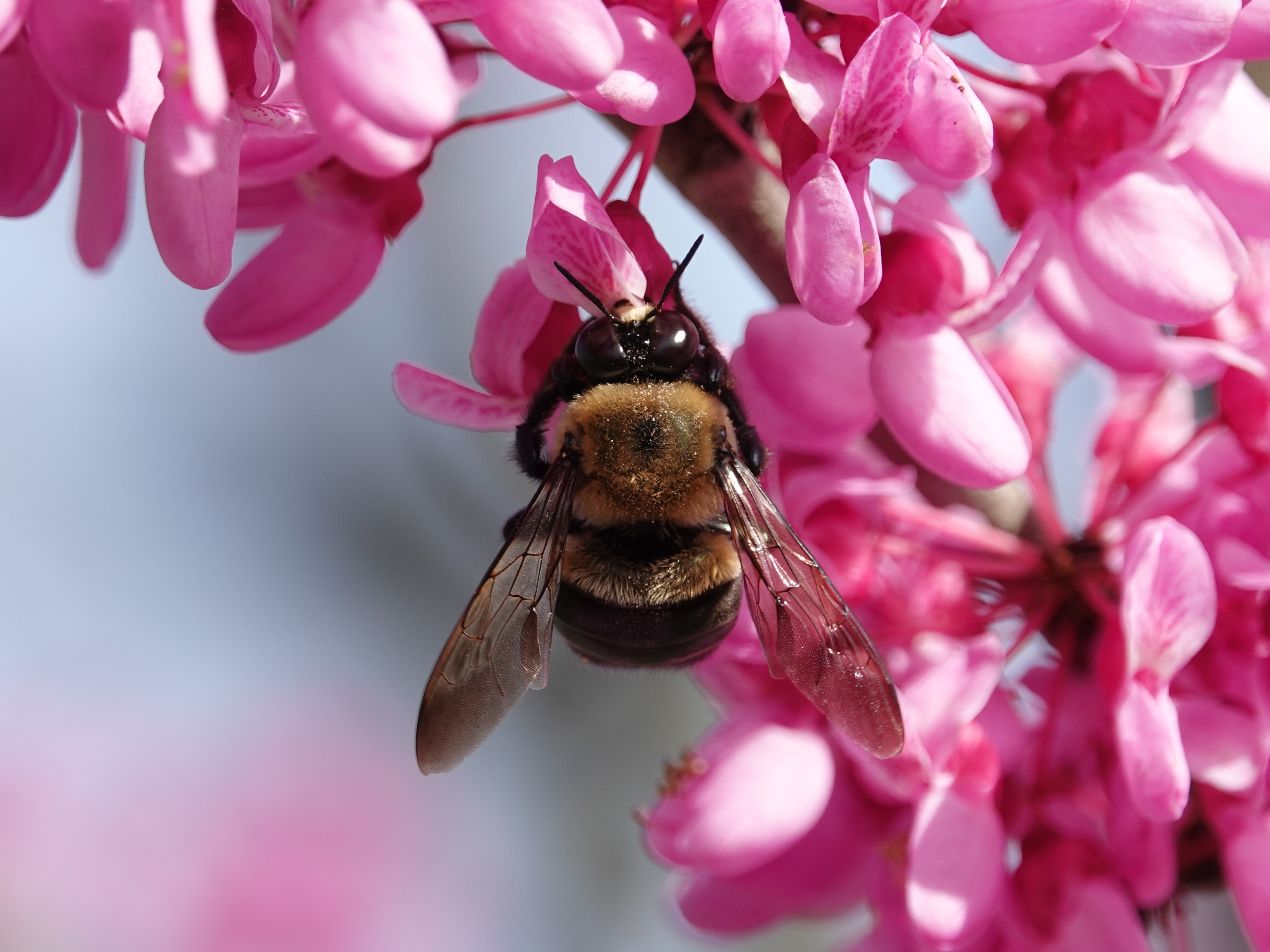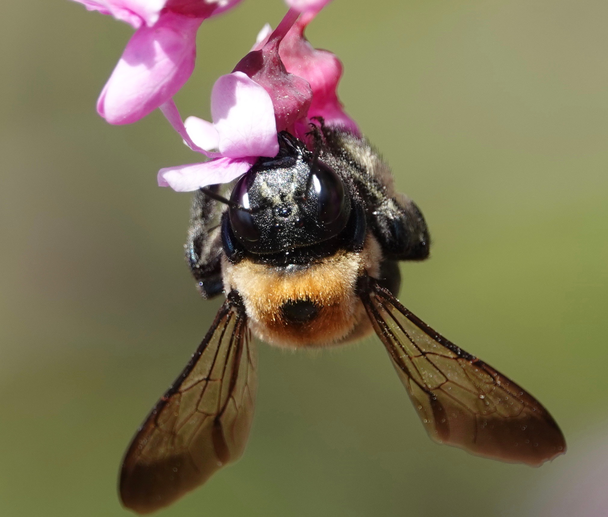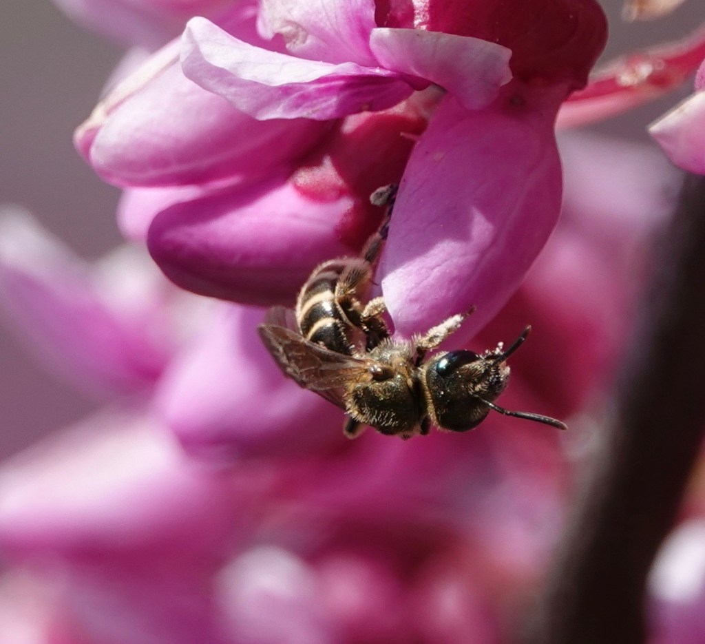 Carpenter bees have been drilling holes in the sides of my wooden cabin in the Ozarks for years. The “damage” they do is minor, but I suppose it can accumulate. This year I’ve set out a bee nest for them to use. Maybe they even will.