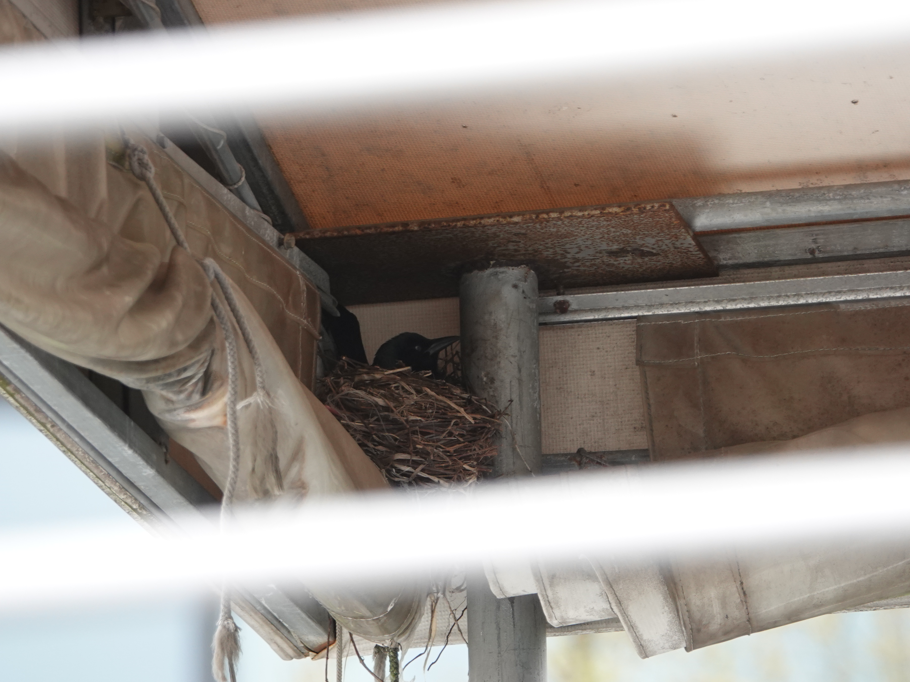 There were nests all around. Pigeons are probably also nesting on the bridge. Starlings are using these little holes in a small building. And that’s a Common Grackle in the awning of the Music Barge. Only thing I didn’t see any evidence of were Barn Swallows, who have nested under Pier 1 for years.
