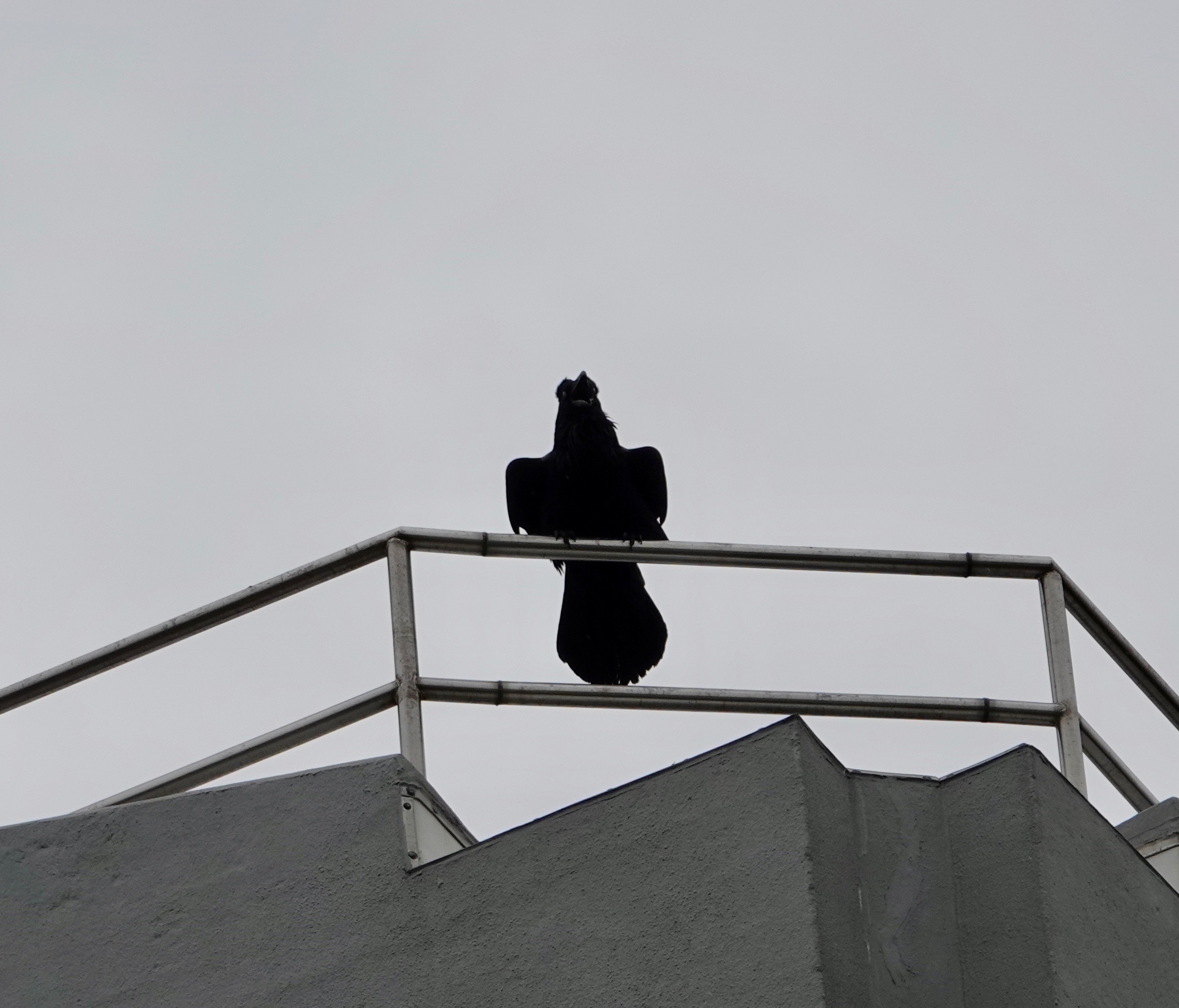 It’s so nosy on around the bridge, what with construction, traffic, more construction at Fulton Ferry, the harbor, etc., that I could barely hear the Raven calling from up on the wires. This one, on a near by building, was more audible.