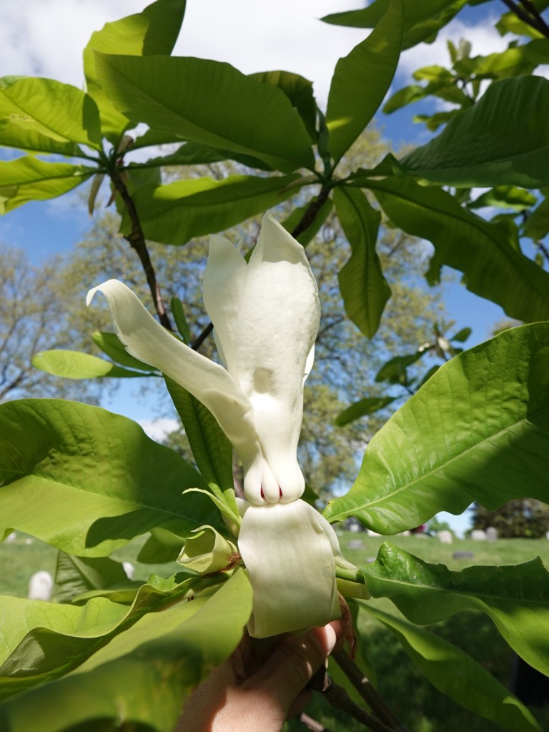The enormous flowers of big leaf magnolia smell… extraordinarily good. (This is evidently a quick way of telling Magnolia macrophylla from the similar large-flowered Magnolia tripetala, which stinks.) I smelled a very refreshing citrus, a nostalgic cola, and summertime. And I smelled it yards and yards away.
