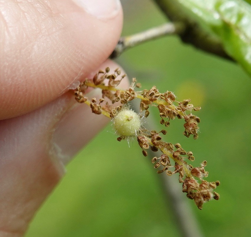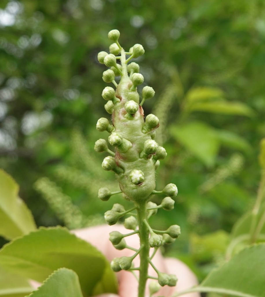 This is the work Contarinia racemi, a midge that forces these swellings on black cherry racemes. You really have to immerse yourself in the foliage this time of year.