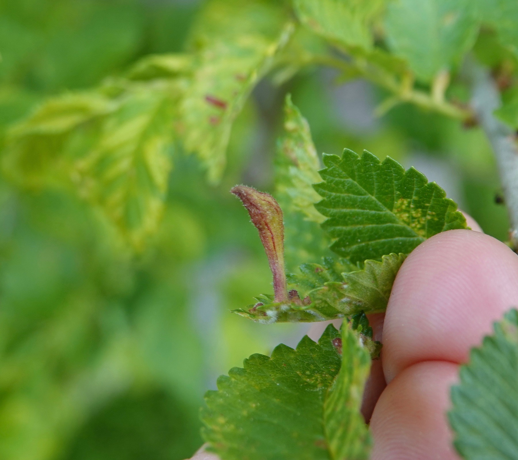 This is the work Contarinia racemi, a midge that forces these swellings on black cherry racemes. You really have to immerse yourself in the foliage this time of year.