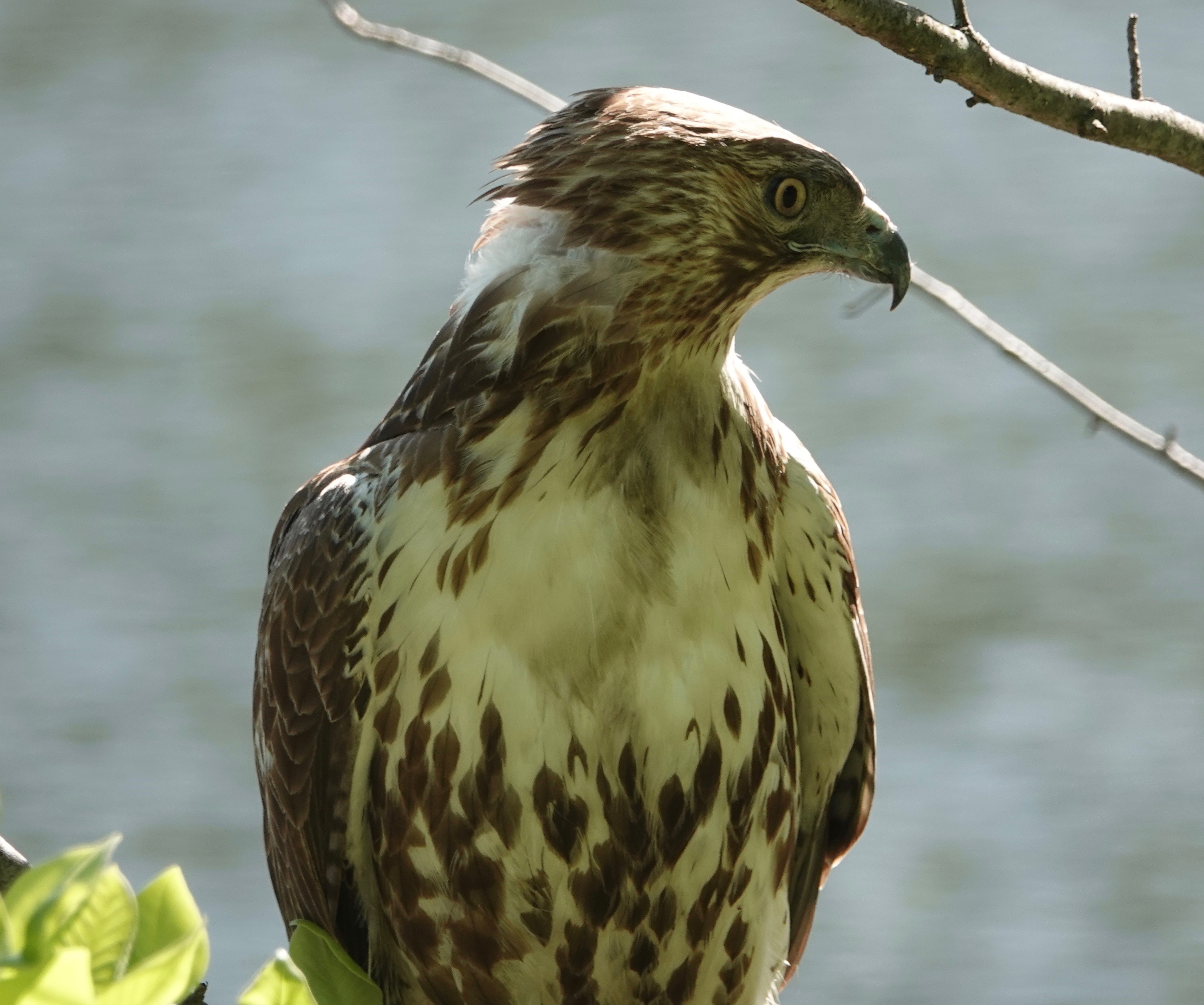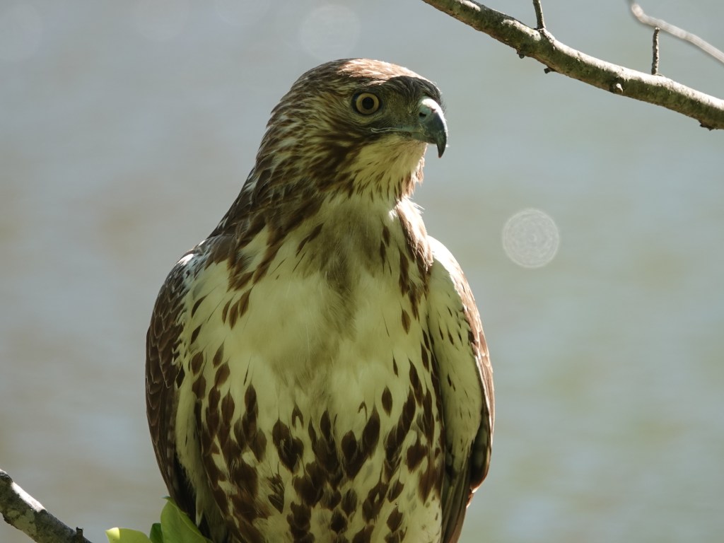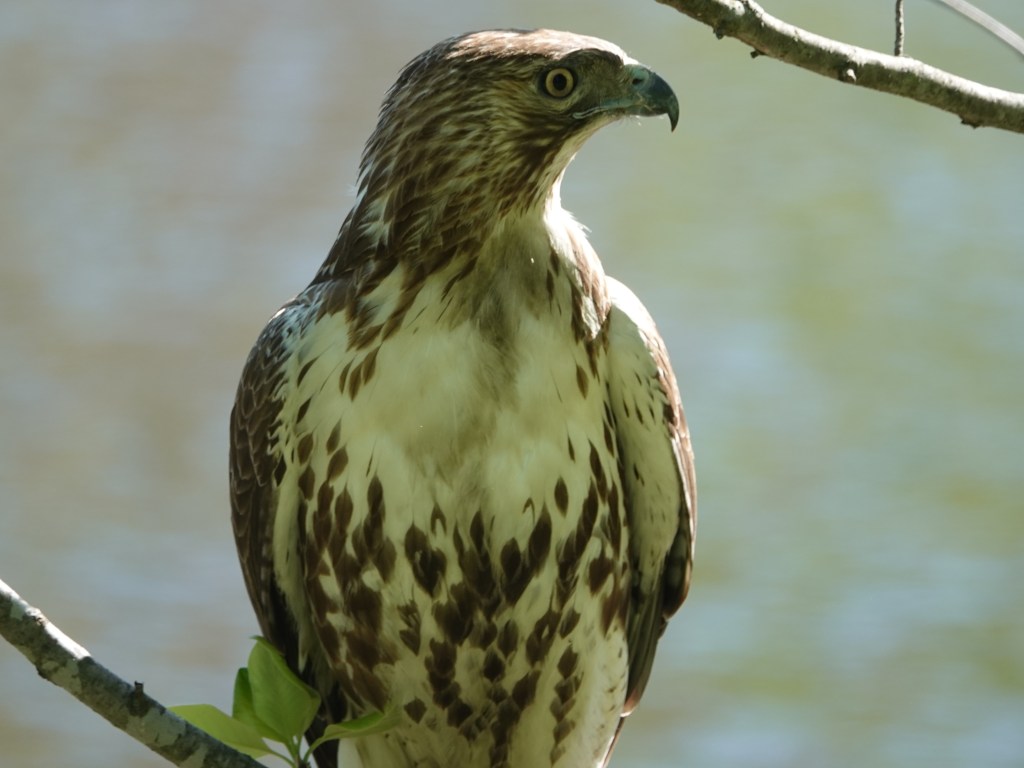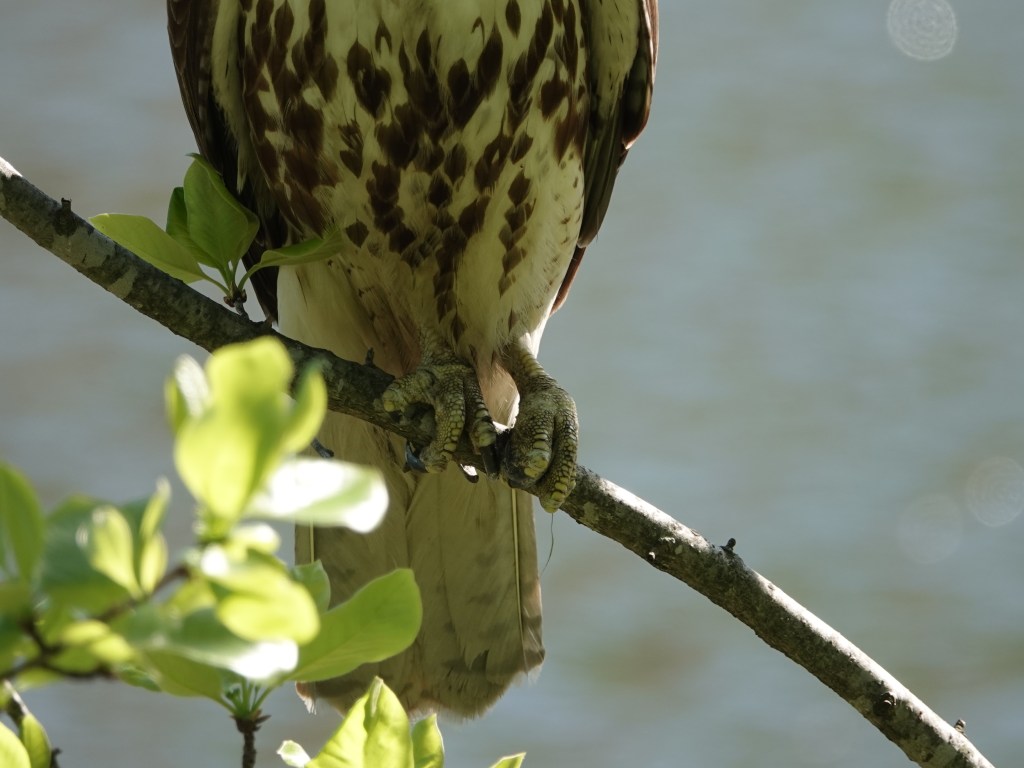 This was the other Red-tailed that showed up soon afterwards. No duckling on the menu for this one, at least while I was around. On Tuesday, I’d counted fourteen ducklings on Sylvan with a female Mallard. There were none after this incident on Thursday. On Wednesday, Green-Wood staff and an animal rescuer got a bunch of ducklings out of a storm drain and released them in Dell Water.