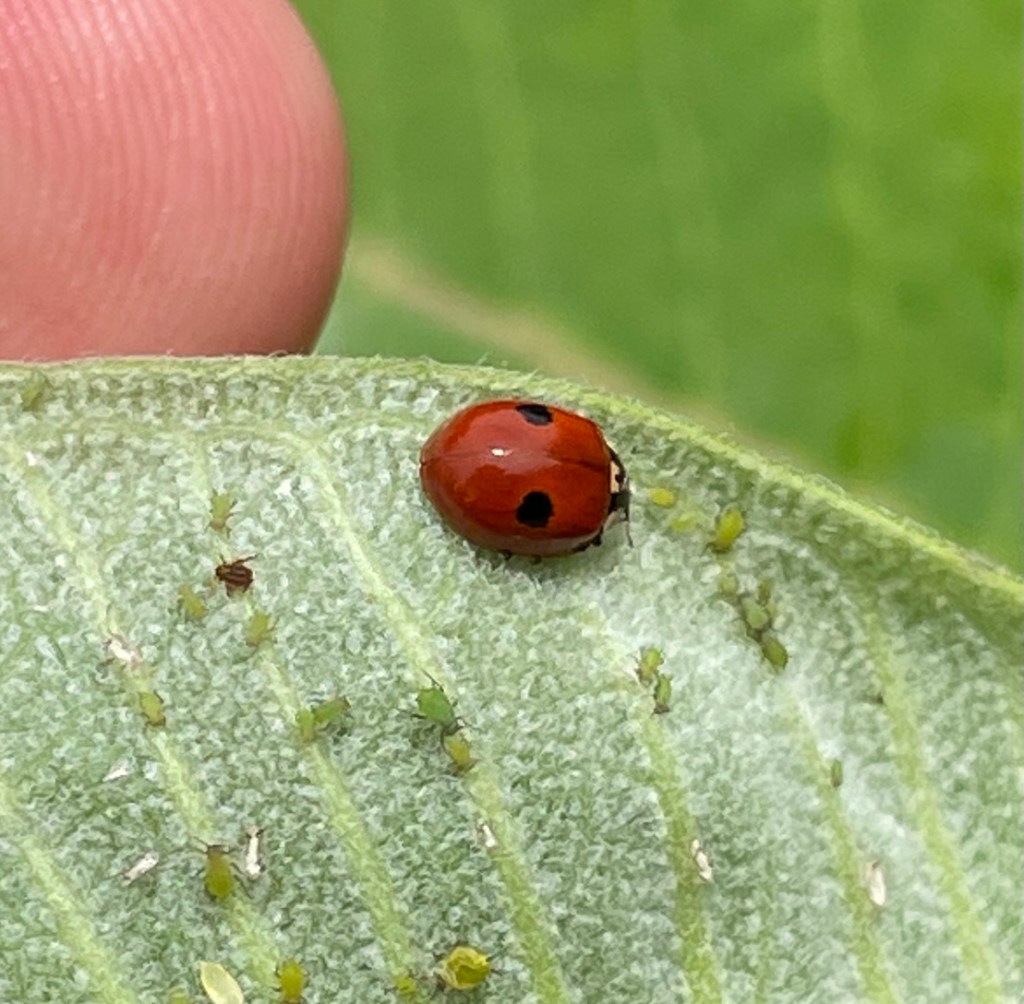 Only the last of these has two spots, but Adalia bipunctata also comes in a black-with-four-red-markings form.