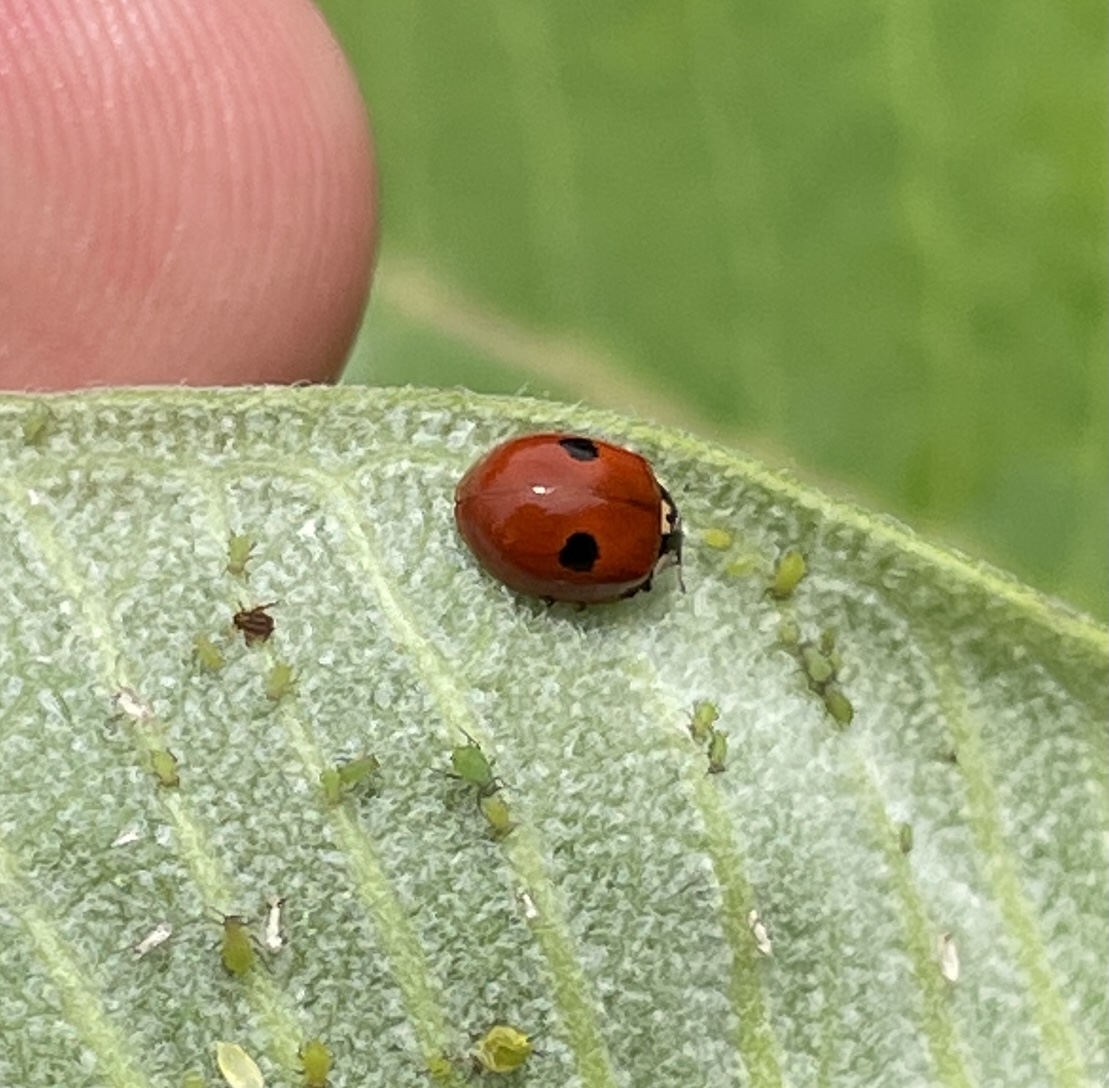 Only the last of these has two spots, but Adalia bipunctata also comes in a black-with-four-red-markings form.