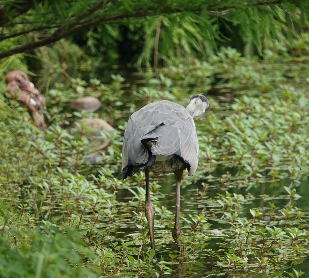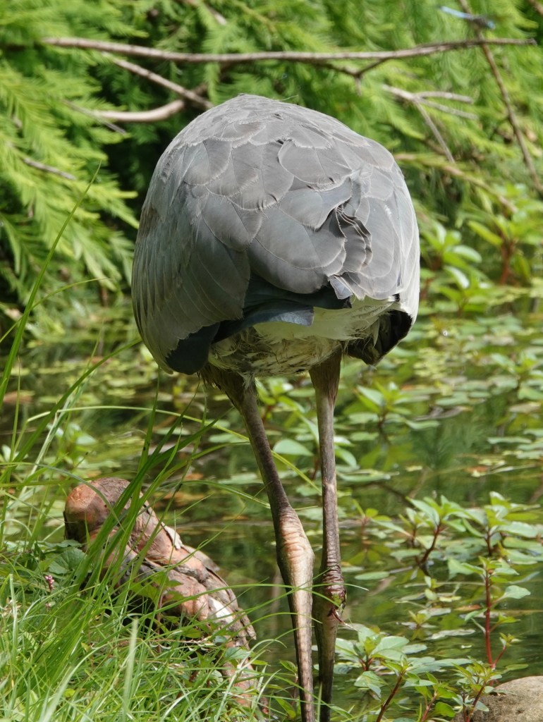 What we think of as the backward bending knee of a bird is actually the ankle. The knee is tucked up under the feathers and bends the same direction as ours. The shin is the tarsometatarsus, or foot bones between the ankle and toes. What we think of as the foot is all toes. Birds started with the same parts we did but came up with a different solution for the puzzle. Fascinating stuff if you’ve a mind to look at it.