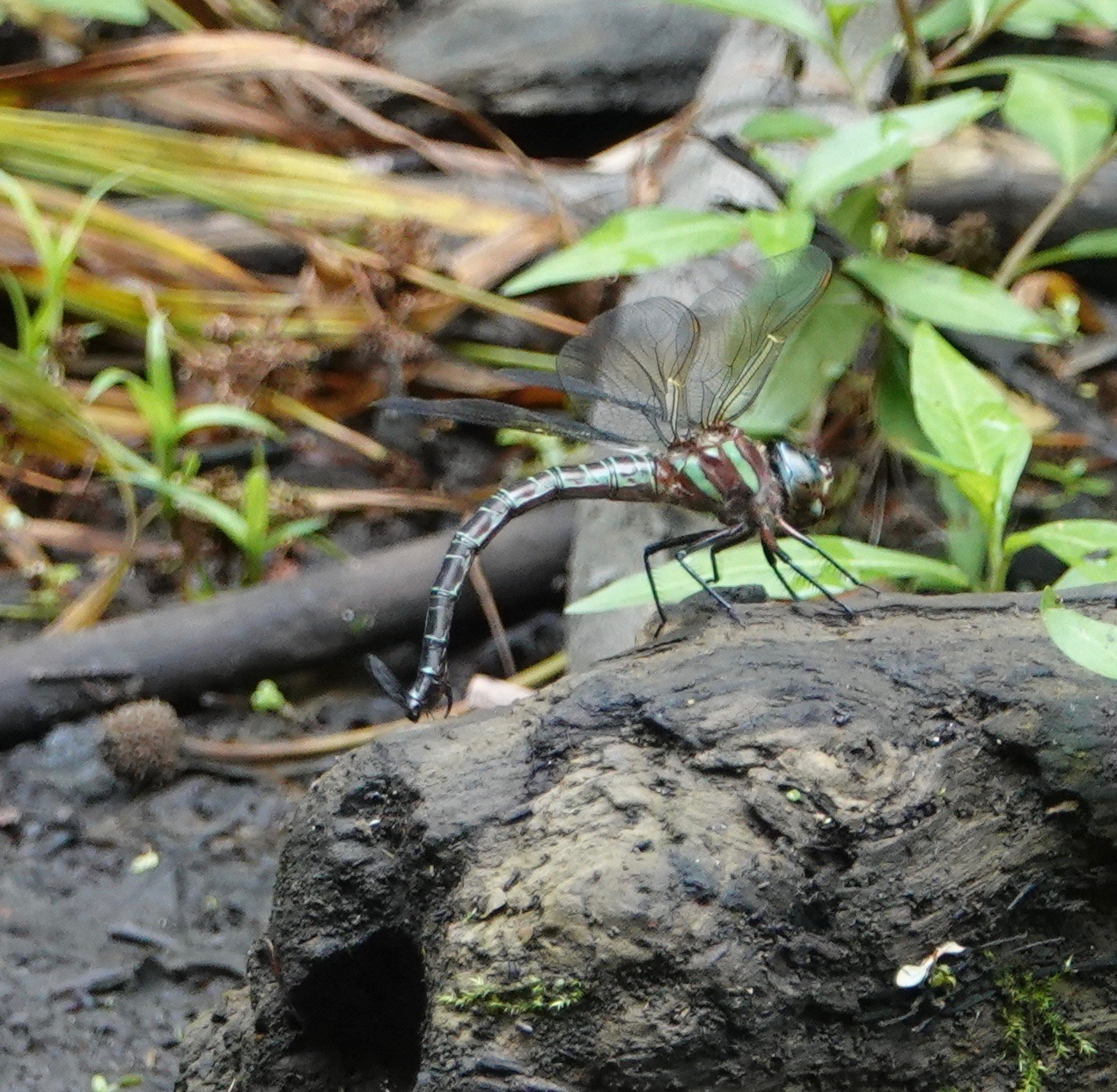 On Thursday, I saw this Swamp Darner planting eggs in this sodden piece of old wood in the Vale of Cashmere. I’d seen the same thing happening… eight years ago (!) At that time, the darner was attacked by a Catbird once she’d finished her ovipositing, or at least some of it. The Catbird won.