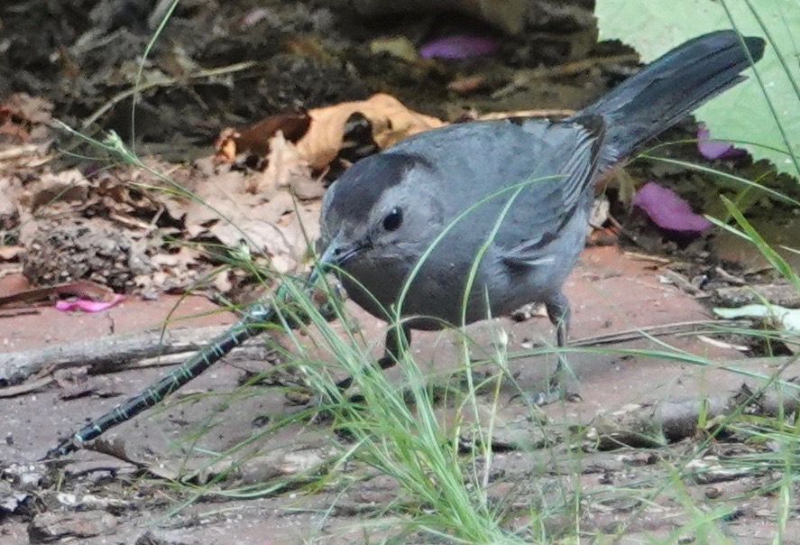 On Friday, another Gray Catbird battered another Swamp Darner into a meal.