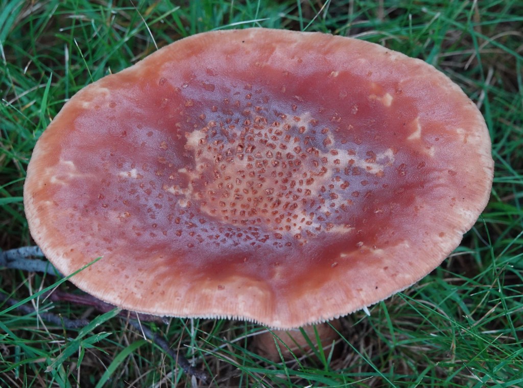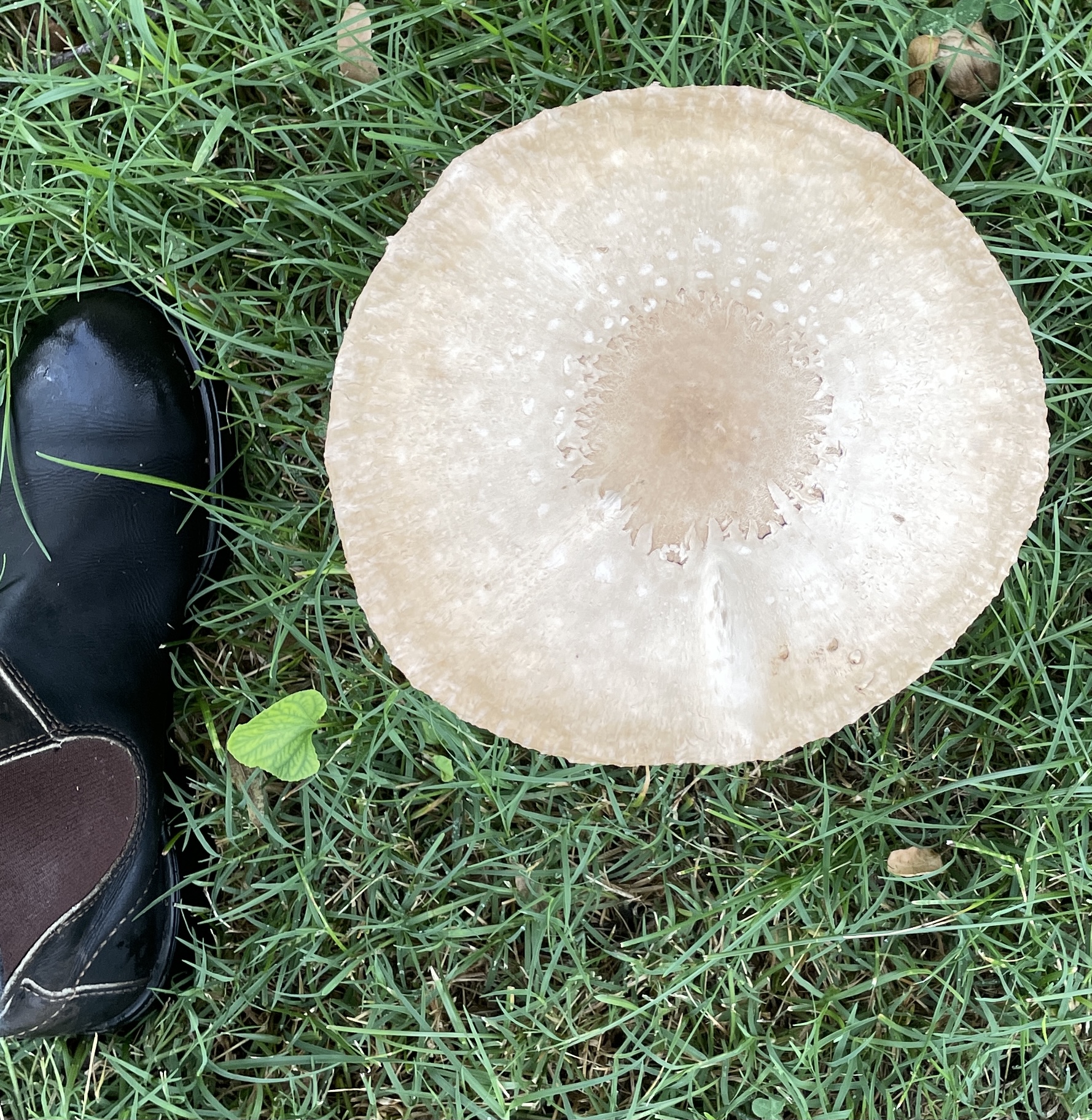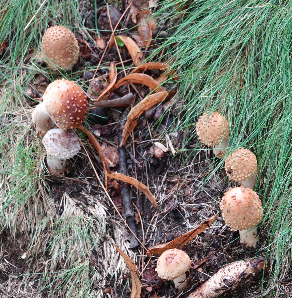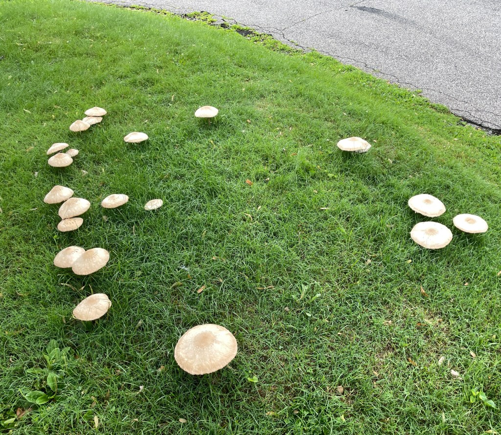 All the rain we’ve been having has resulted in a host of fungal fruiting-bodies. The enormous ones above (my boot is a literal foot, 12″ long) have been IDed as Green-spored Parasol (Chlorophyllum molybdites). Also known as the “vomiter.” Don’t eat.