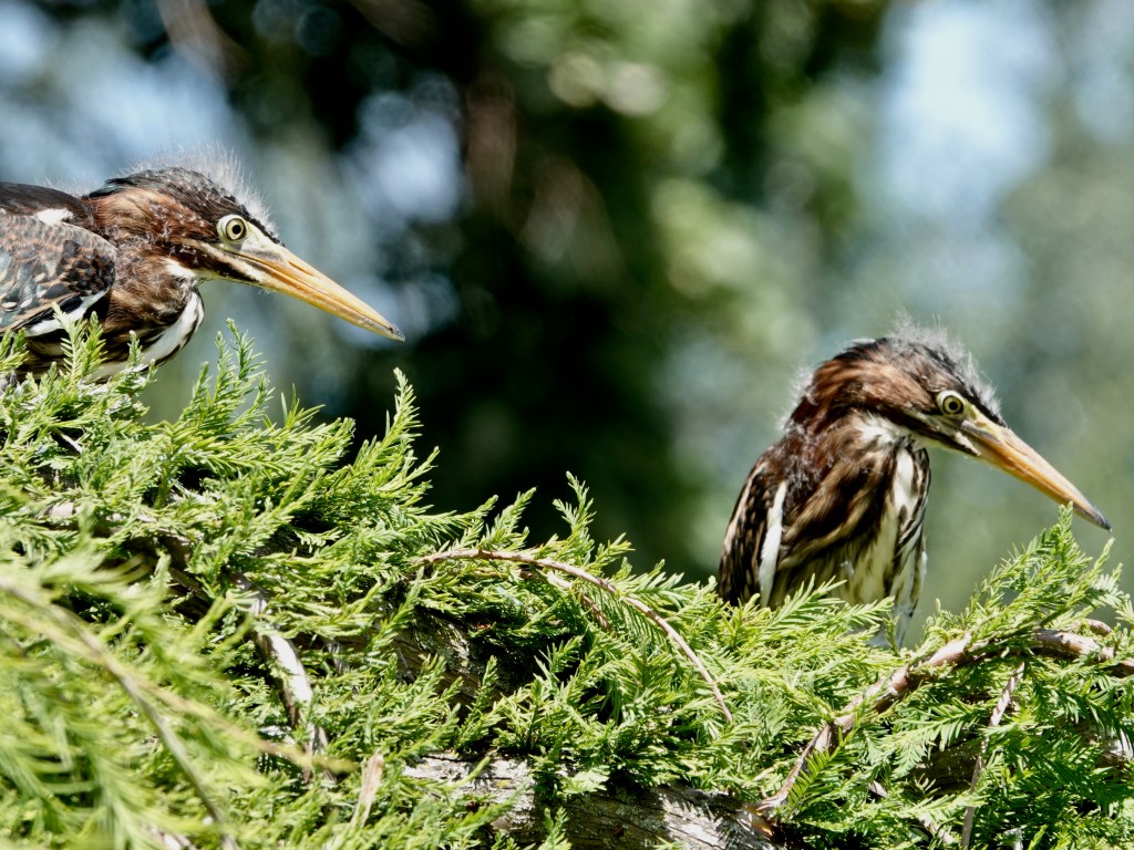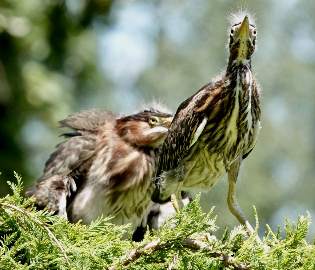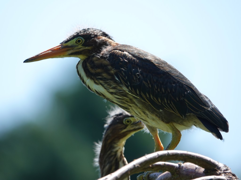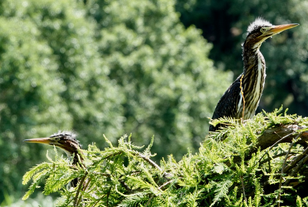 I tried to get all three of these fledgling Green Herons to pose together, but you’ve heard of herding cats? Imagine trying to herd fresh herons.