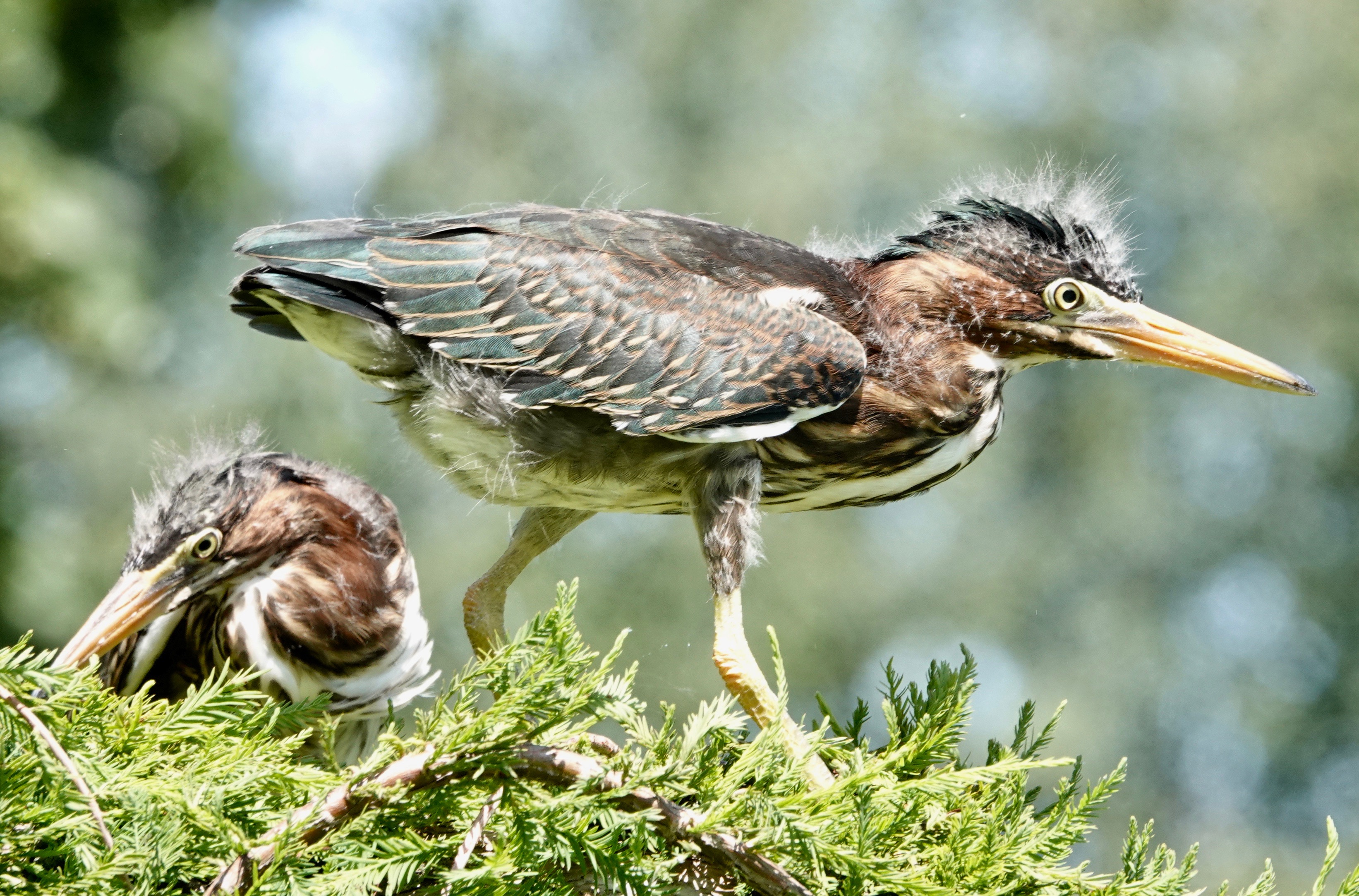 I tried to get all three of these fledgling Green Herons to pose together, but you’ve heard of herding cats? Imagine trying to herd fresh herons.