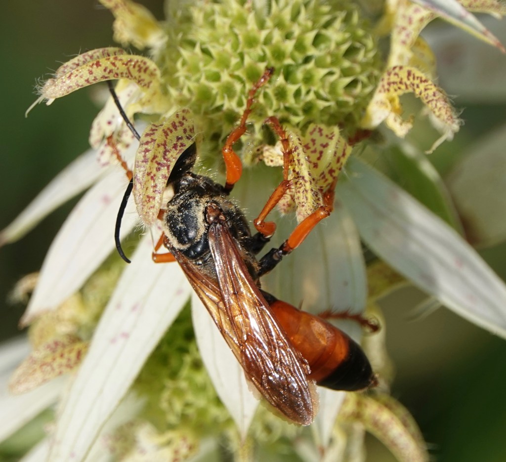 Here’s a Great Golden Digger Wasp (Sphex ichneumoneus).