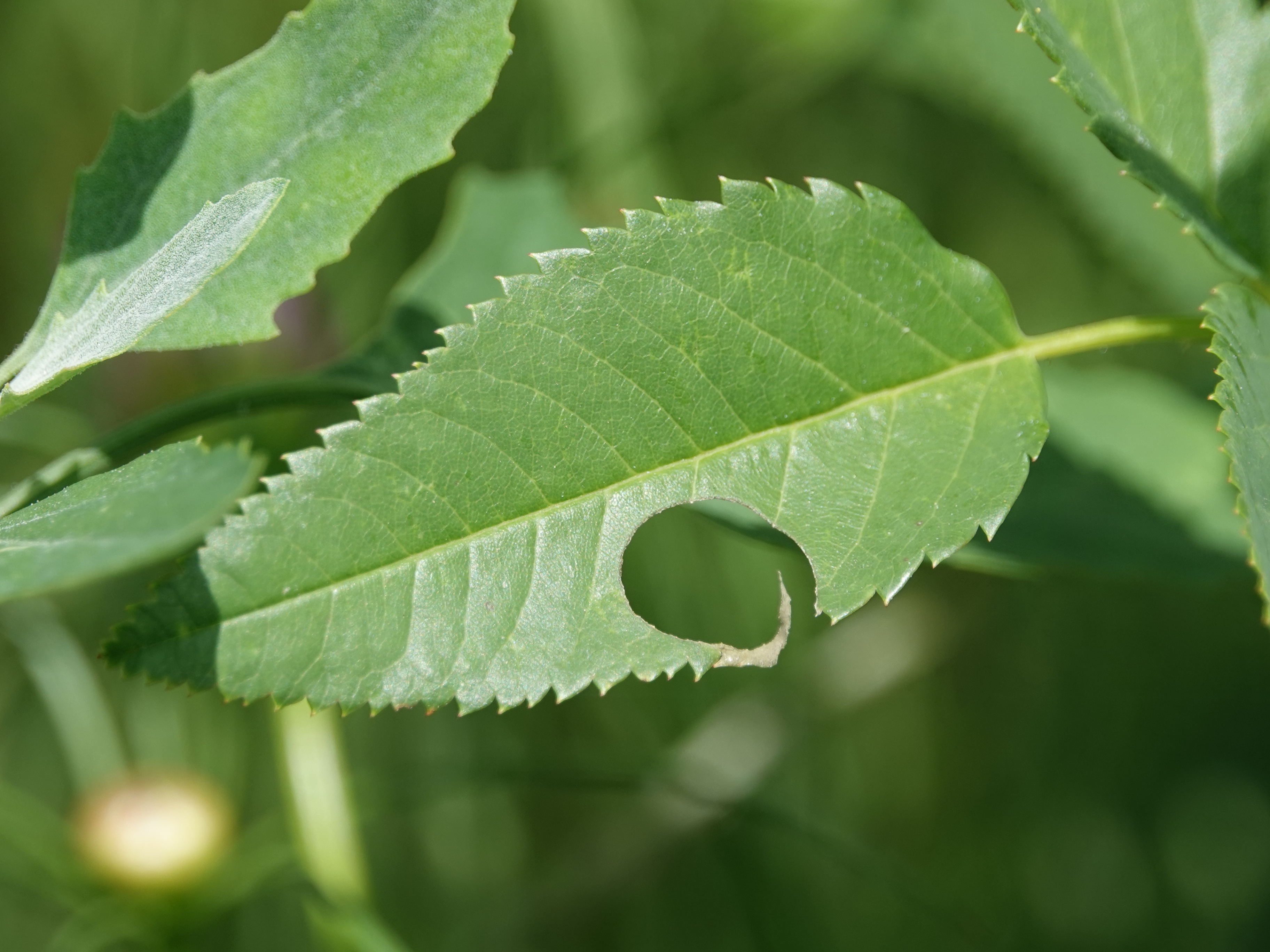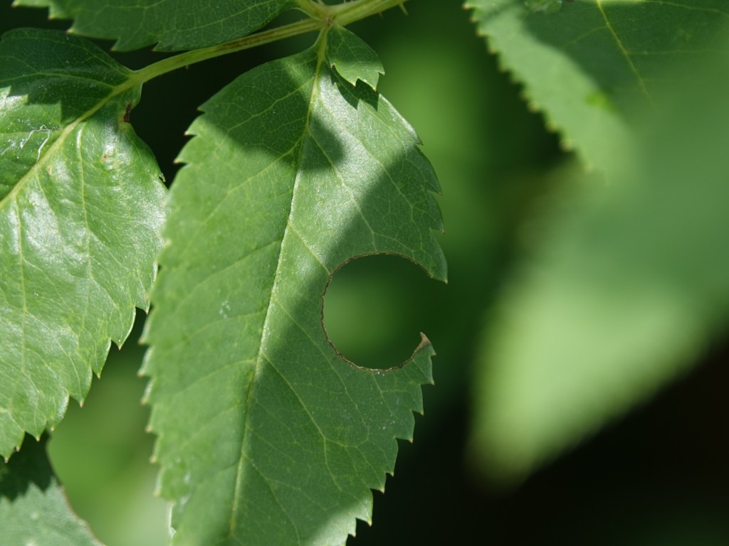 Megachile genus leaf-cutter bees cut out circles of leaves to line their nests.