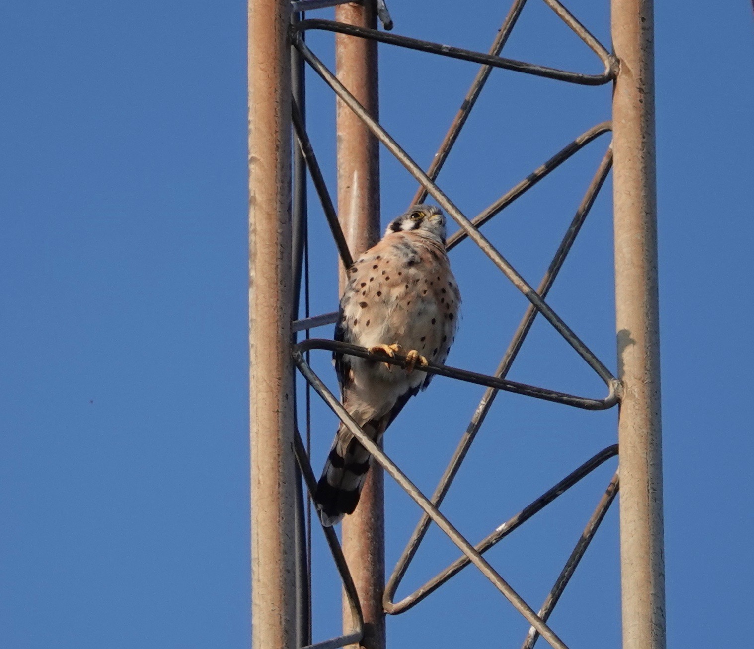 Male American Kestrel on the old car service antenna. It’s been a while.