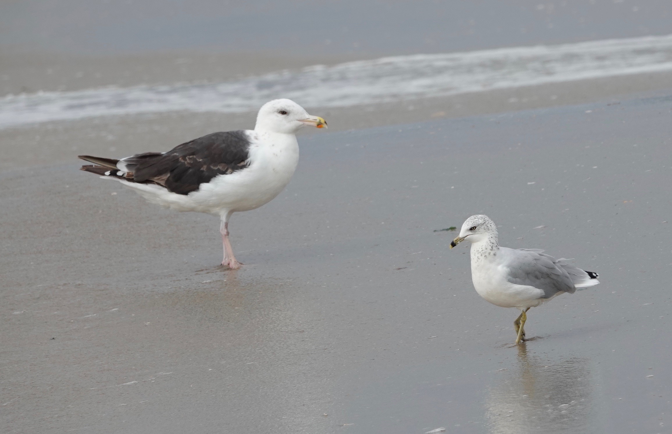Size matters, but is frequently guessed incorrectly, especially at a distance. Relative size is more helpful. Bill shape and pattern are more definitive. Leg color can be helpful too.