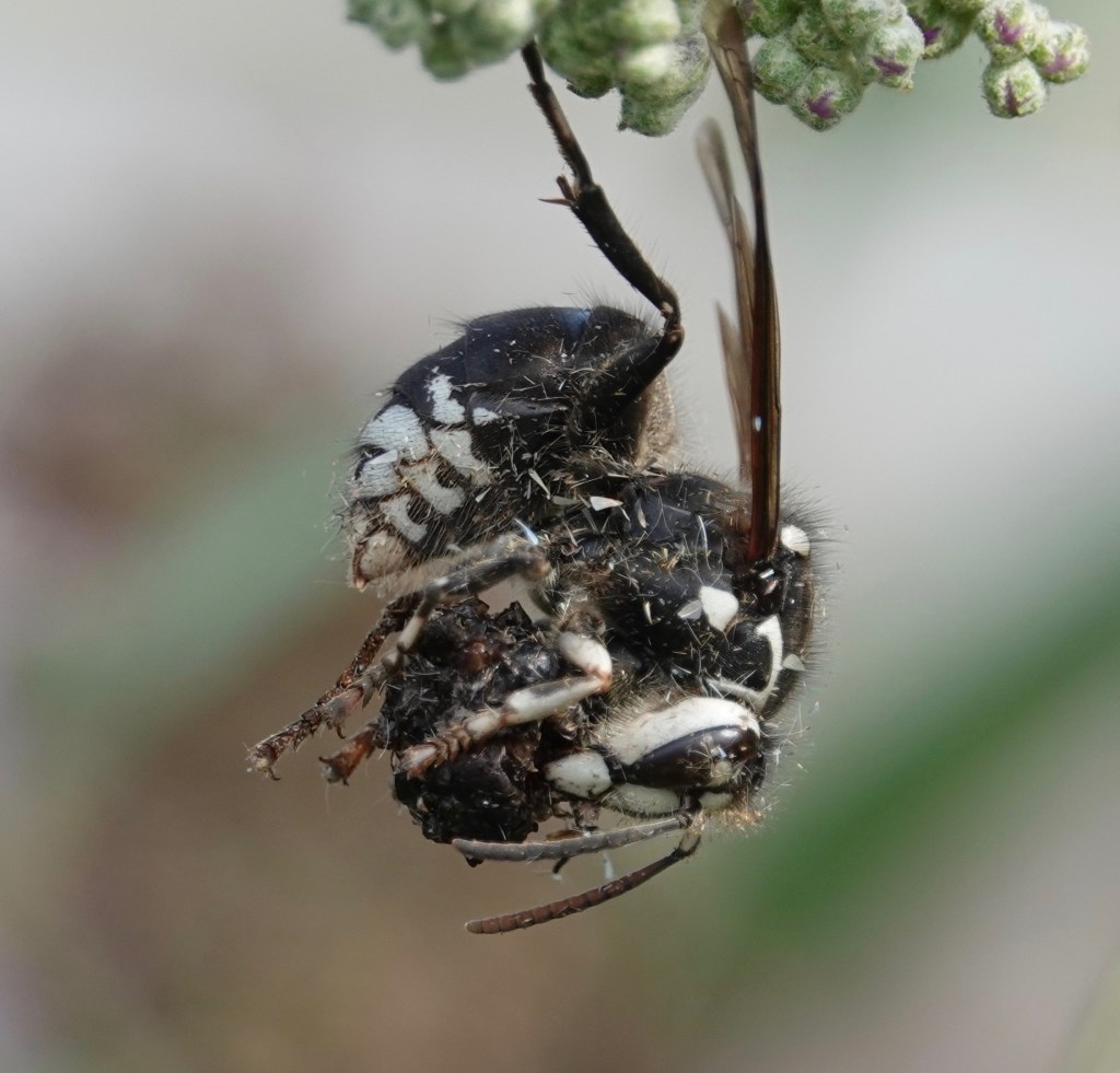 Everything but the wings. The big mandibles of the Dolichovespula can scrape up the wood fibers they use to build their paper nests, and then dismember prey lickety-split.