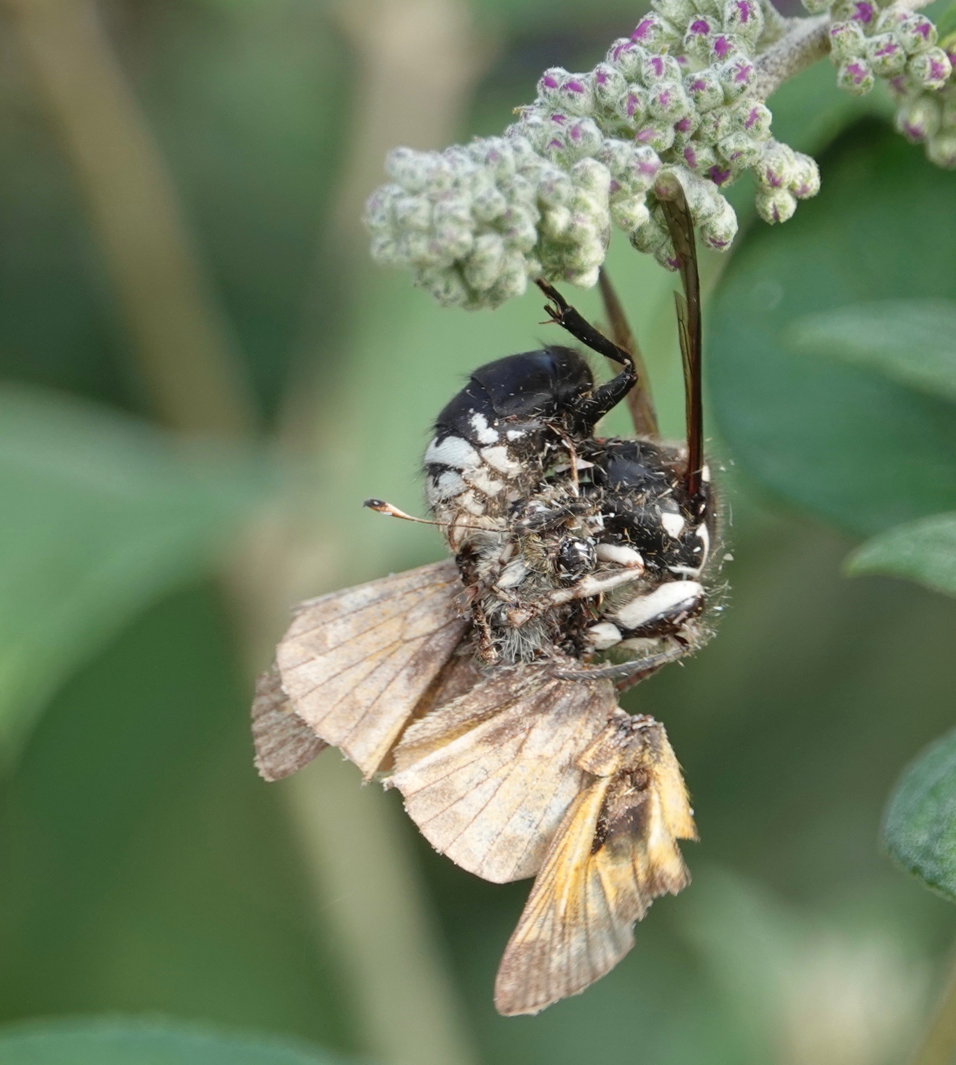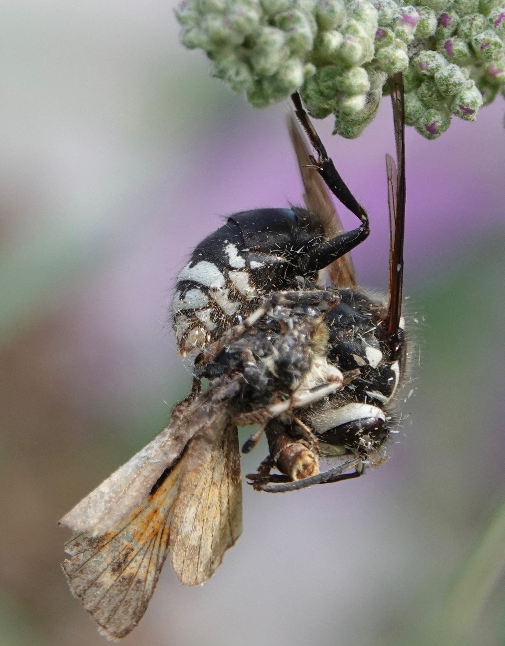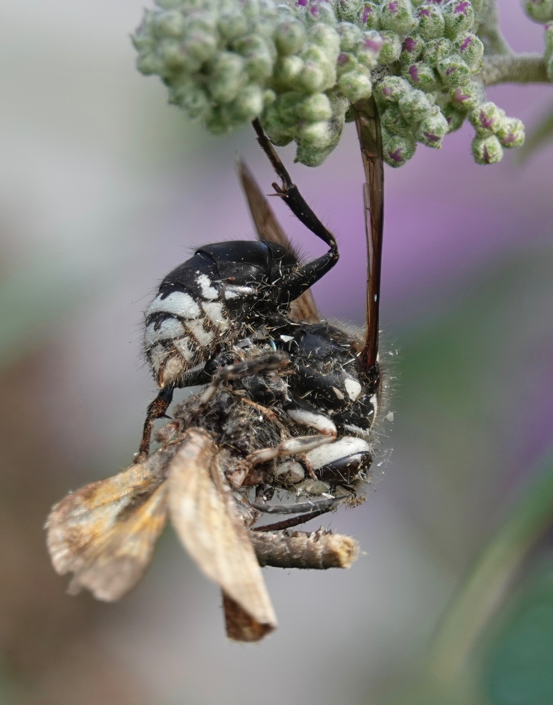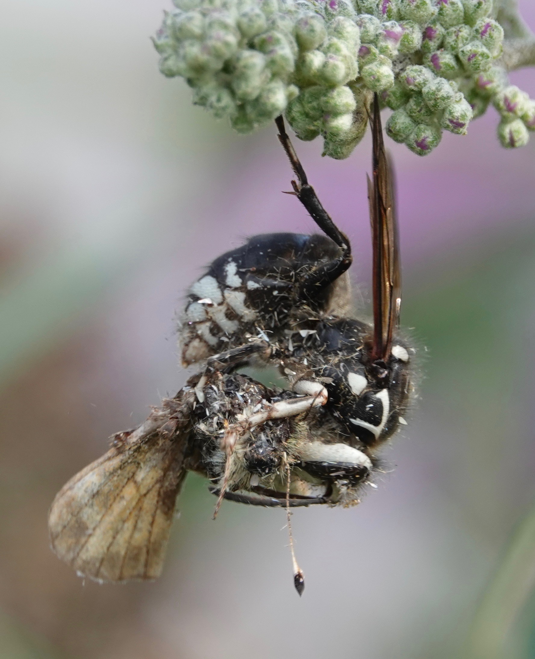 I see Bald-faced Hornets hunting all the time, but this is the first time I’ve seen one dispatching prey.