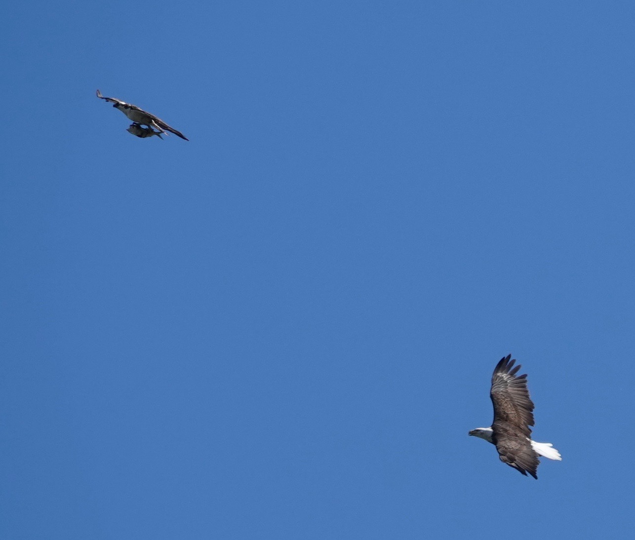 Eagles chase any bird with a fish especially when they are hungry!