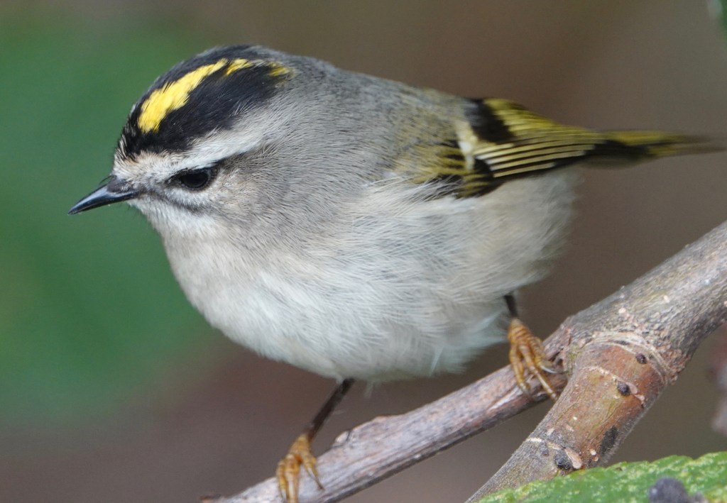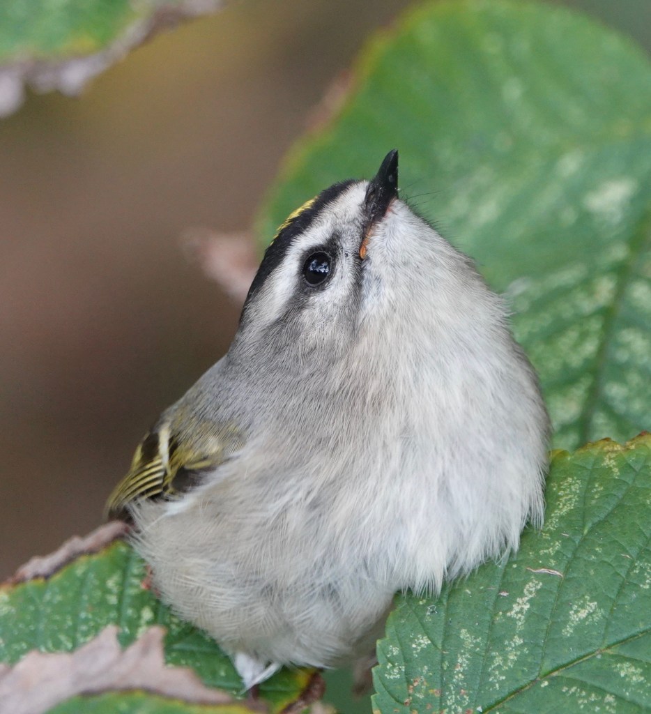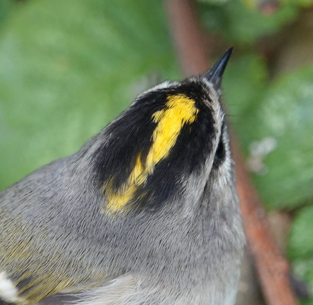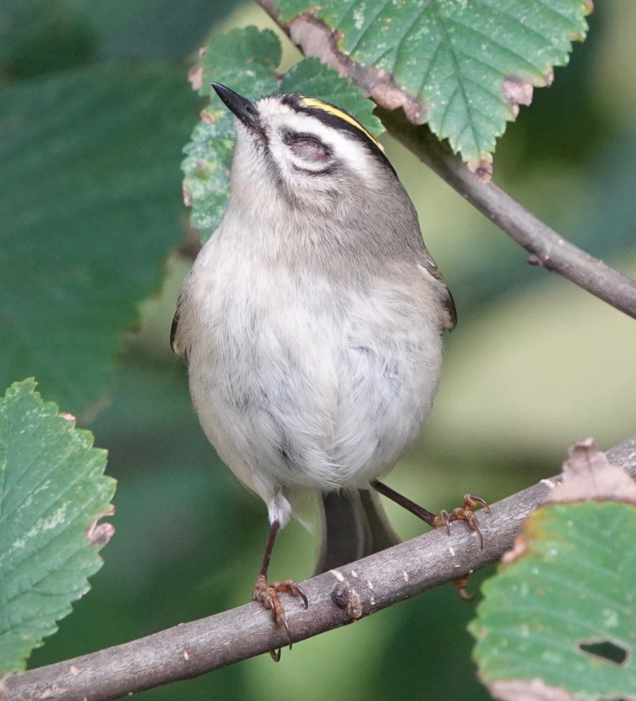 I am always impressed with the complete acceptance of a new and different reality most animals achieve upon receiving an injury or, as in this case, losing an important body part. It would seem stereo vision would be crucial for flight as well as in finding and capturing mobile food. Yet, this one-eyed kinglet seems unaware of the loss of his eye. He behaves exactly like the other kinglets and is treated as complete and of equal value by his congeners. We humans have much to learn.