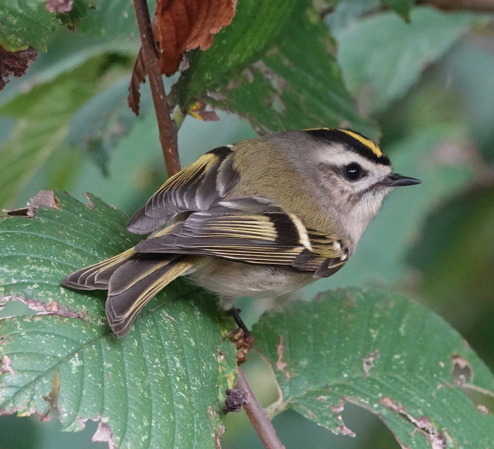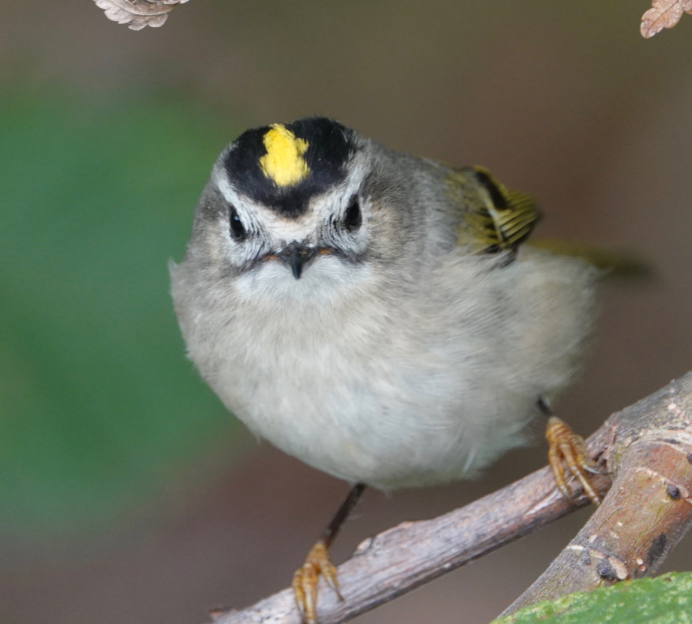 I am always impressed with the complete acceptance of a new and different reality most animals achieve upon receiving an injury or, as in this case, losing an important body part. It would seem stereo vision would be crucial for flight as well as in finding and capturing mobile food. Yet, this one-eyed kinglet seems unaware of the loss of his eye. He behaves exactly like the other kinglets and is treated as complete and of equal value by his congeners. We humans have much to learn.
