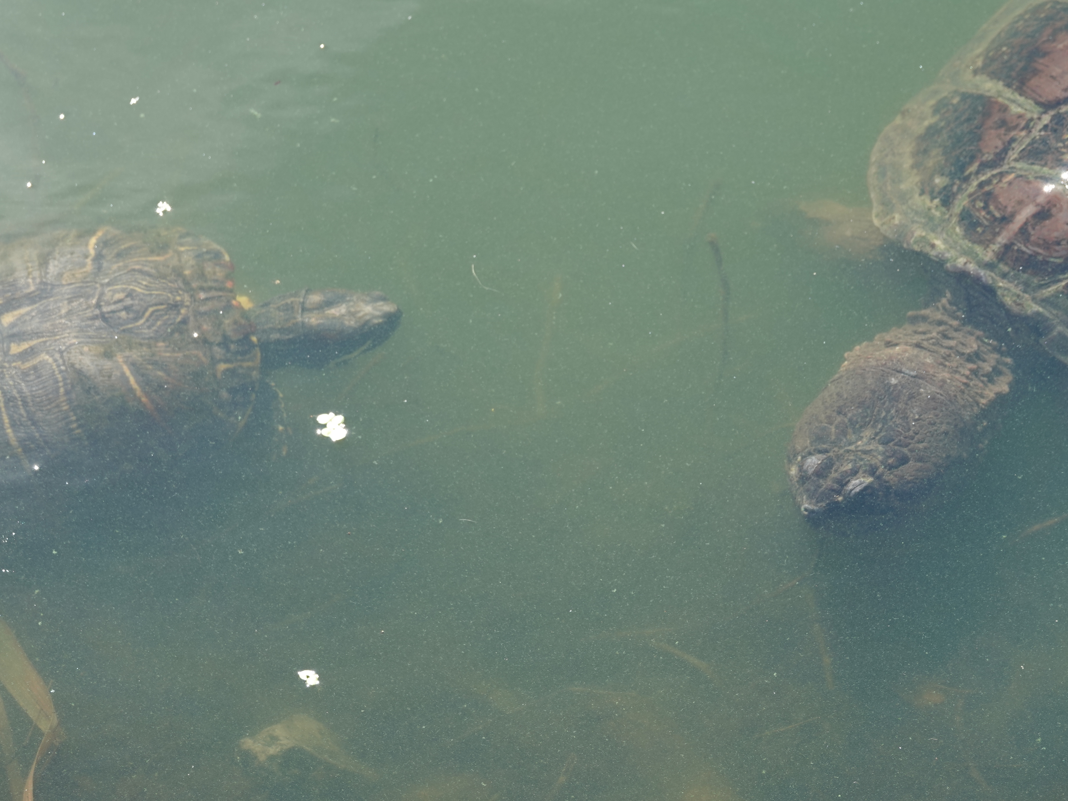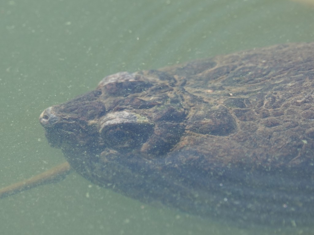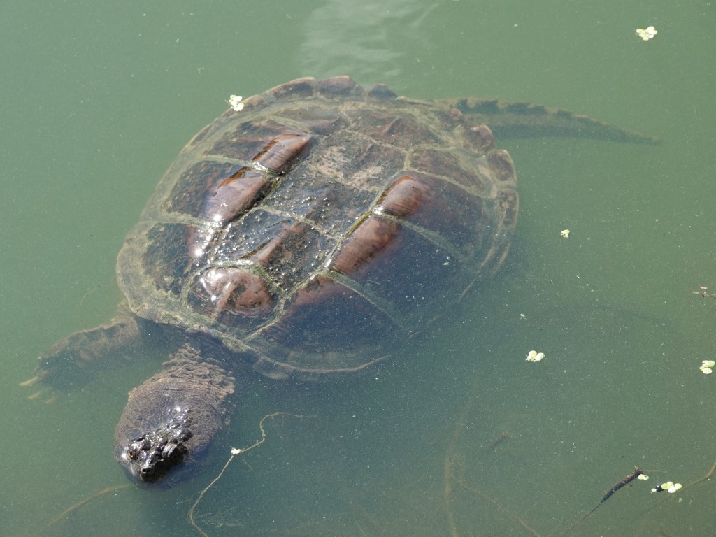 This Snapper has repeatedly approached me along the shores of Sylvan. I suspect people are feeding the turtles here. Slider checks out the big guy. (Who isn’t that big when it comes to Common Snappers.)Ah, yes, a turtle-feeder. Please don’t feed the wildlife signs whatevers.
