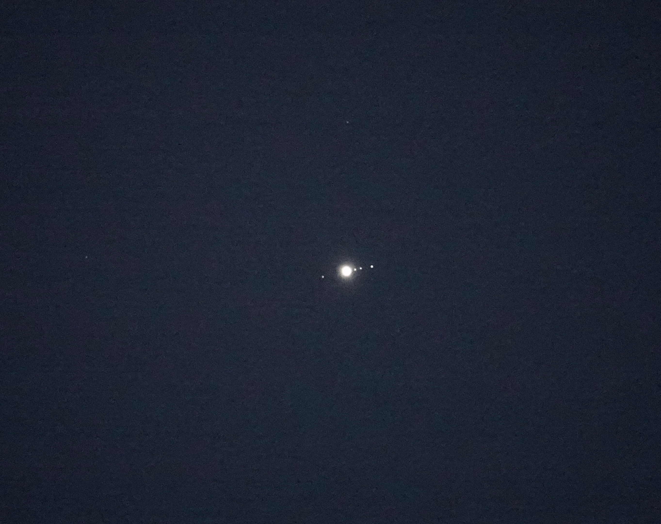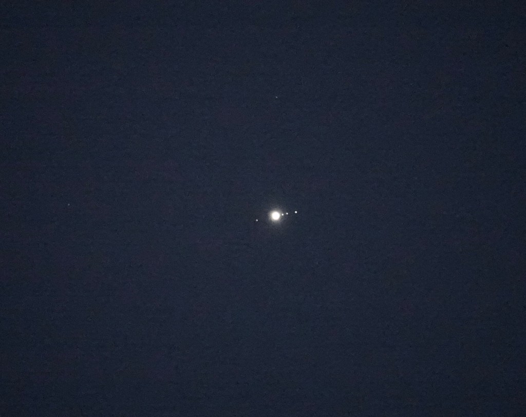 Just a reminder: Even a not too elaborate telephoto lens can capture the four large moons of Jupiter. I always forget this.