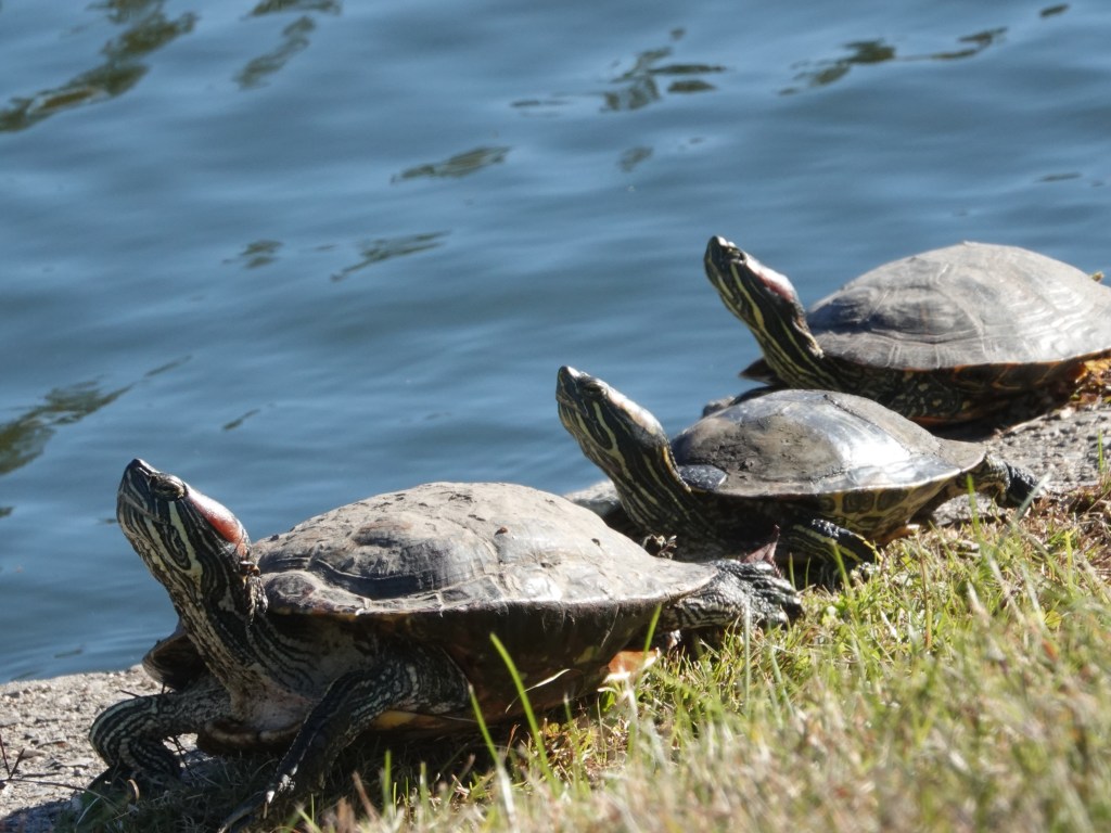 Last week, it was warm enough for these Red-eared Sliders. A species native to a wide swath of the midlands, from westernTexas to western Indian, and north to Illinois, these have been spread every damn where by the irresponsible pet trade and the fools who buy from them.