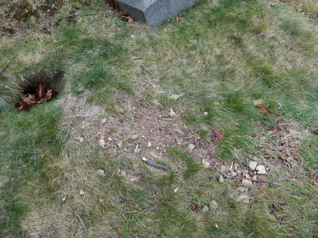 Leaf-fall reveals the drays, the summer homes of our Eastern Gray Squirrels. (Yes, that’s a big broken branch balanced up there.)Almost tripped over the rocks thrown out of this Groundhog hole. Leaned recently that Groundhogs and Possums sometimes share dens.